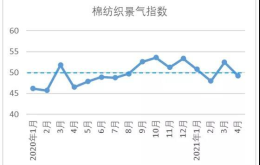 中國棉紡織行業景氣指數采集自全國近500家次棉紡織企業,參考國家制造業PMI等指數制定方式,通過對多個主要指標加權計算得出,當指數高于50,表示棉紡織行業本月景氣程度好于上月,低于50則表示本月景氣程度不及上月。