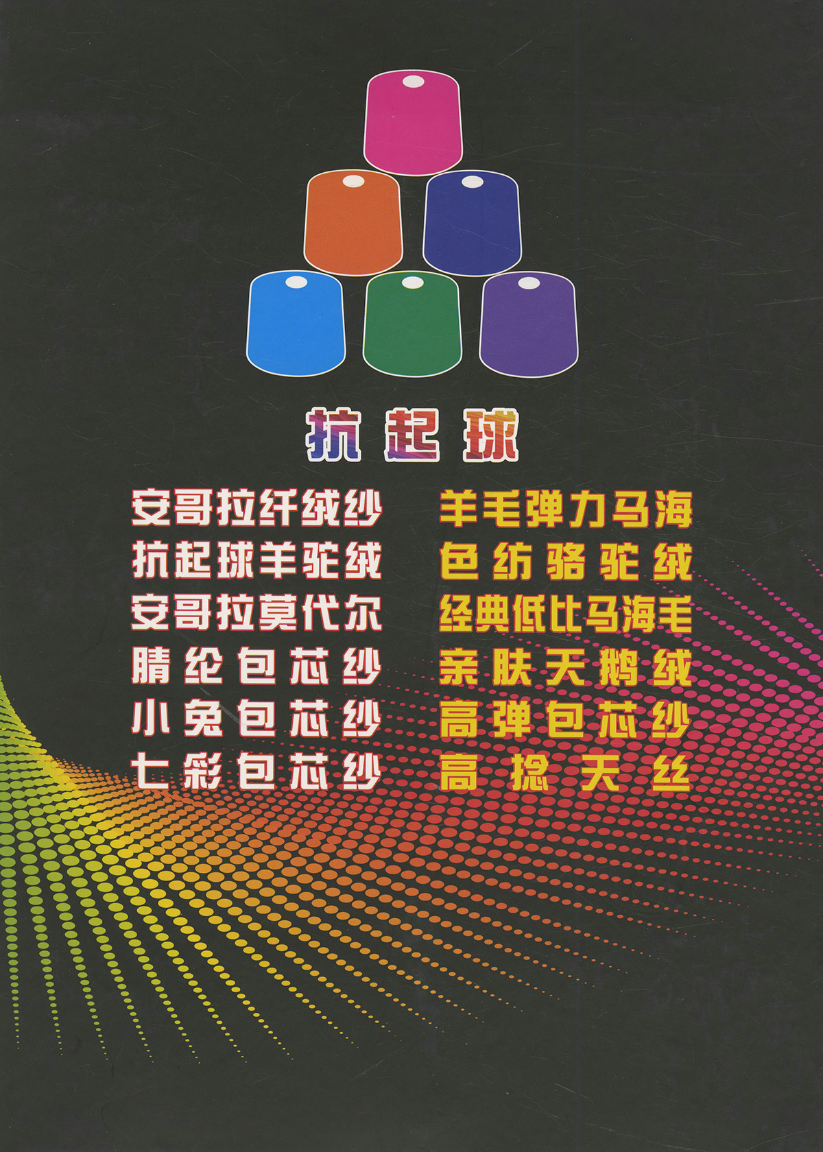 抗起球高捻天絲、安哥拉纖絨紗、安哥拉莫代爾、抗起球羊駝毛、高彈包芯紗、七彩包芯紗、兔絨包芯紗、腈綸包芯紗、兔毛包芯紗、小兔包芯紗、三股包芯紗等
