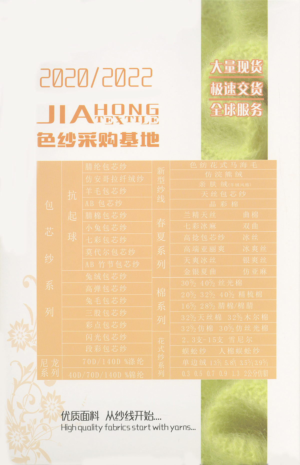 抗起球腈綸包芯紗、抗起球安哥拉纖絨紗、七彩包芯紗、莫代爾包芯紗、曲棉、AB包芯紗