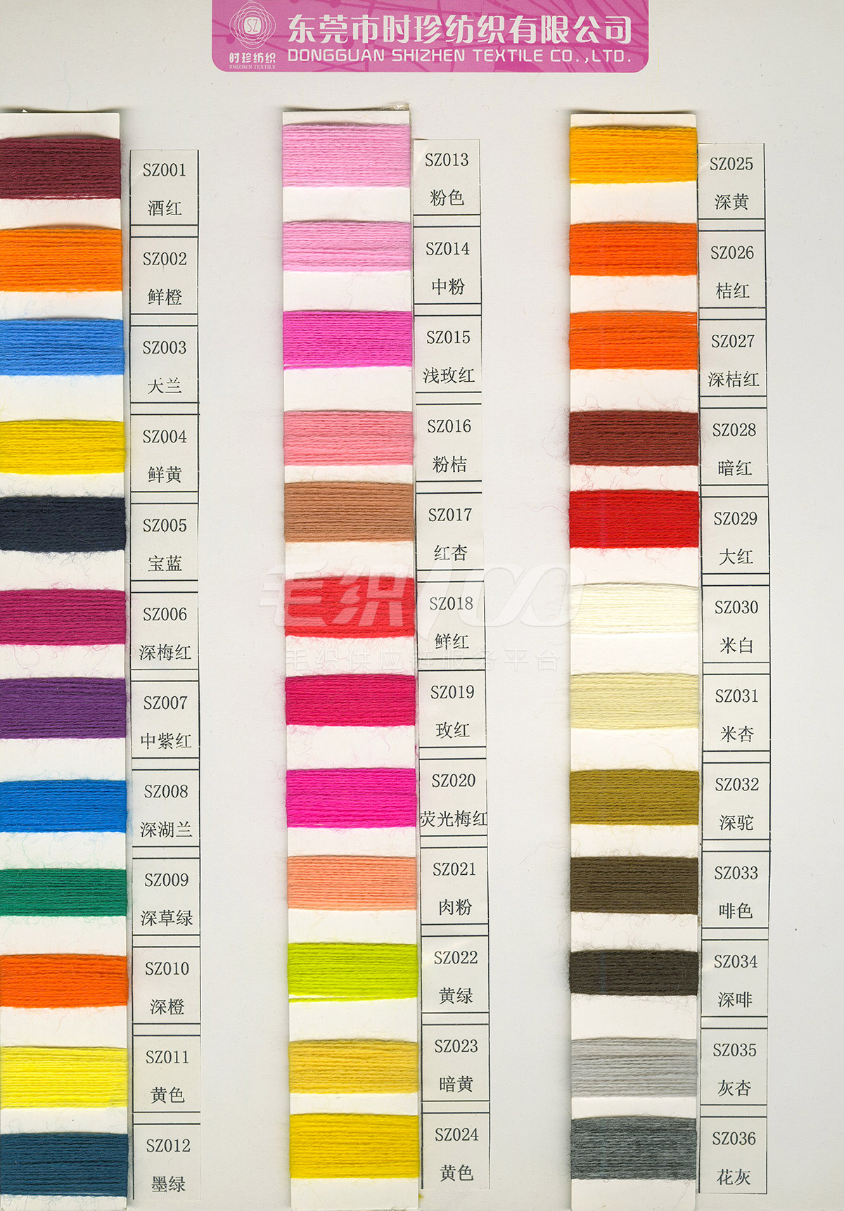 各種支數(shù)色號(hào)線紗,定染毛料,馬海毛,曲珠,晴綸混紡紗,晴綸紗,圈圈紗,人絲,包芯紗,羽毛紗,羊仔毛,羊絨,生紗及各種特殊規(guī)格花色紗,和各規(guī)格的紡織布料,代漂染色