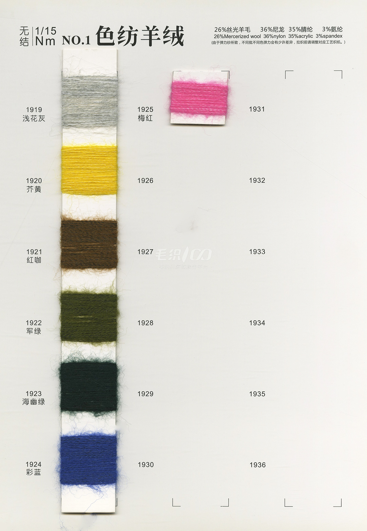 1/14仿牛絨 1/14糯米絨 1/15高端馬海毛 1/13支 超凡(絨毛系列)、1/9支 超越(絨毛系列)、1/9支 愛迪紗(意大利彩點組)、1/4.8支 福布斯(奢侈小香風)、1/4.2支 遼寧艦(羊駝長毛)、1/10支 山東艦(羊駝長毛)、1/5.5支 華貴(羊駝馬海毛