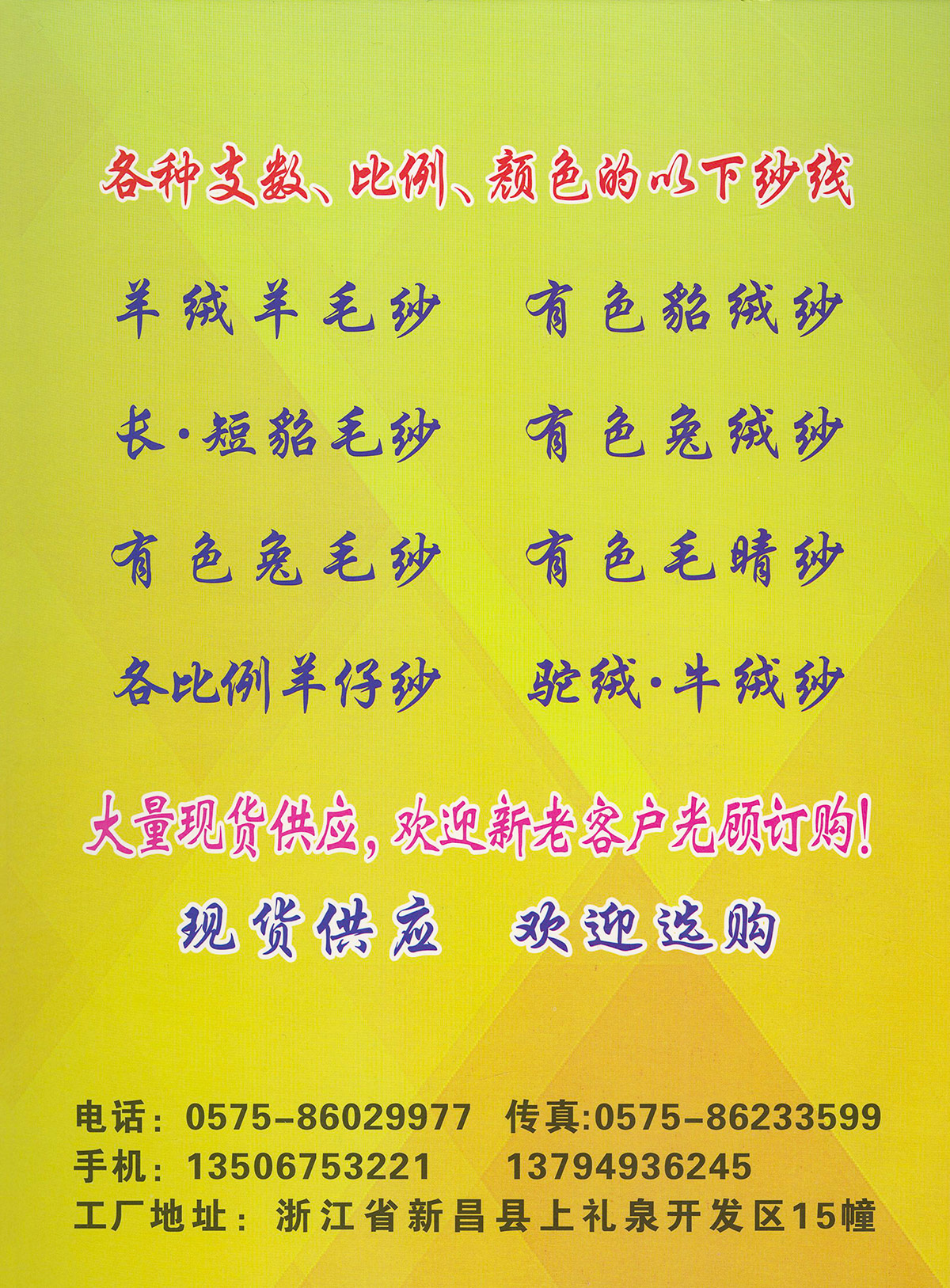山羊絨、貂絨、貉子絨、浣熊絨、牛絨、羊駝毛、羊仔毛、兔絨兔毛紗、點子紗等針織紗線