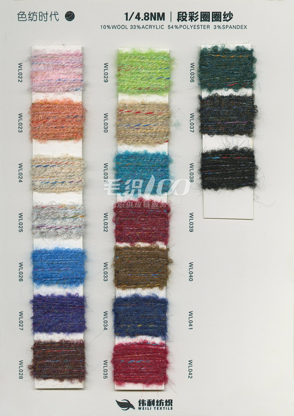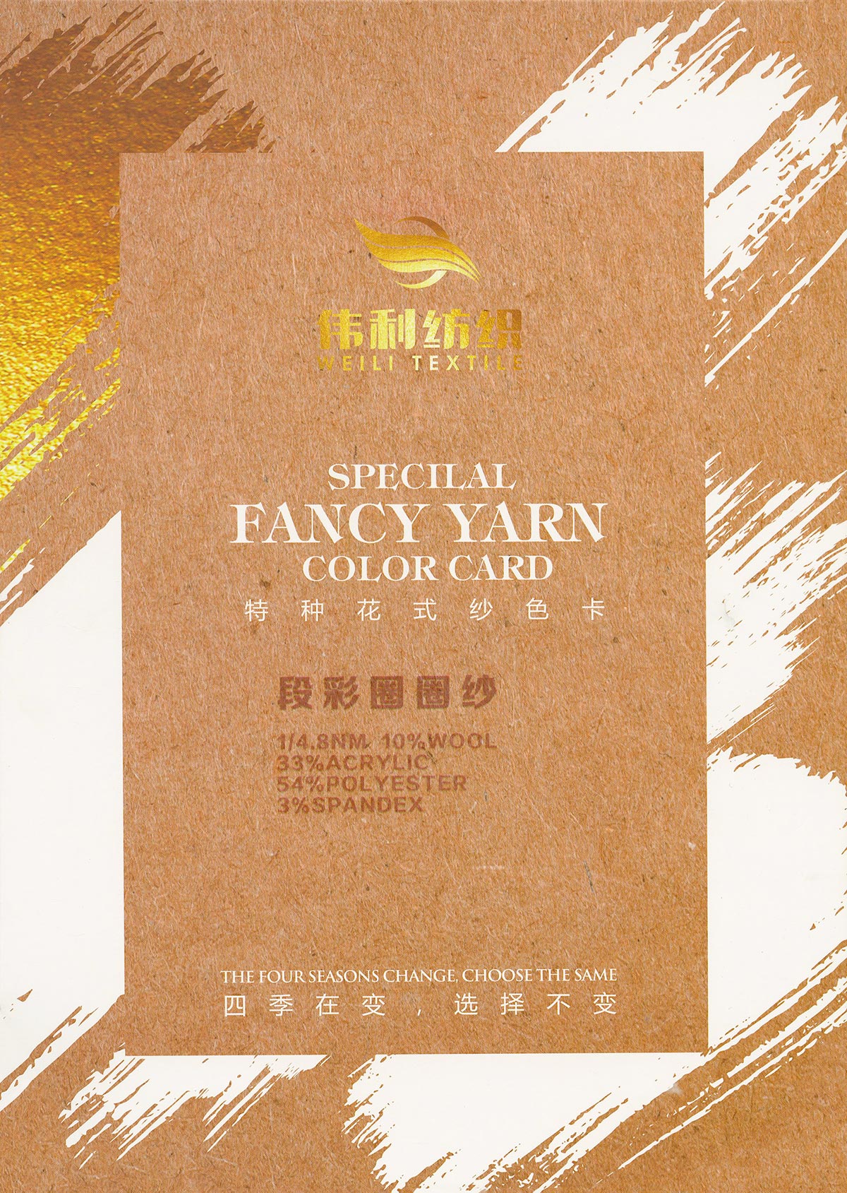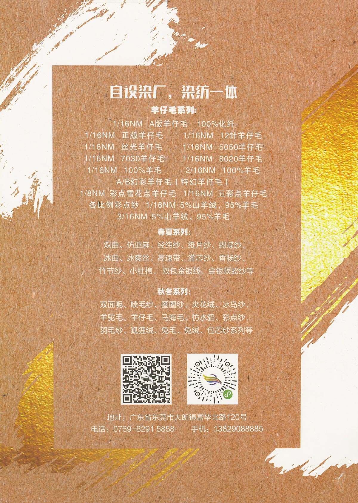 特種花式紗系列:螞蟻絨、棉花絨、珊瑚絨、花駝絨、磨毛考拉絨、彩虹噴毛紗、羊絨珠片紗、再生莫代爾珠片紗、漸變彩虹噴毛系列、金銀蜈蚣紗、金銀玻璃紗、金銀雙包紗、金銀空心帶、香腸紗、蜻蜓紗、蝴蝶紗、高速帶、馬海毛、空心帶、米粉紗、小肚棉、彩點(diǎn)紗、經(jīng)緯紗、水結(jié)珠、梯仔紗、菊花紗、燈籠紗、羊駝毛、圈圈紗、等花式特種紗。