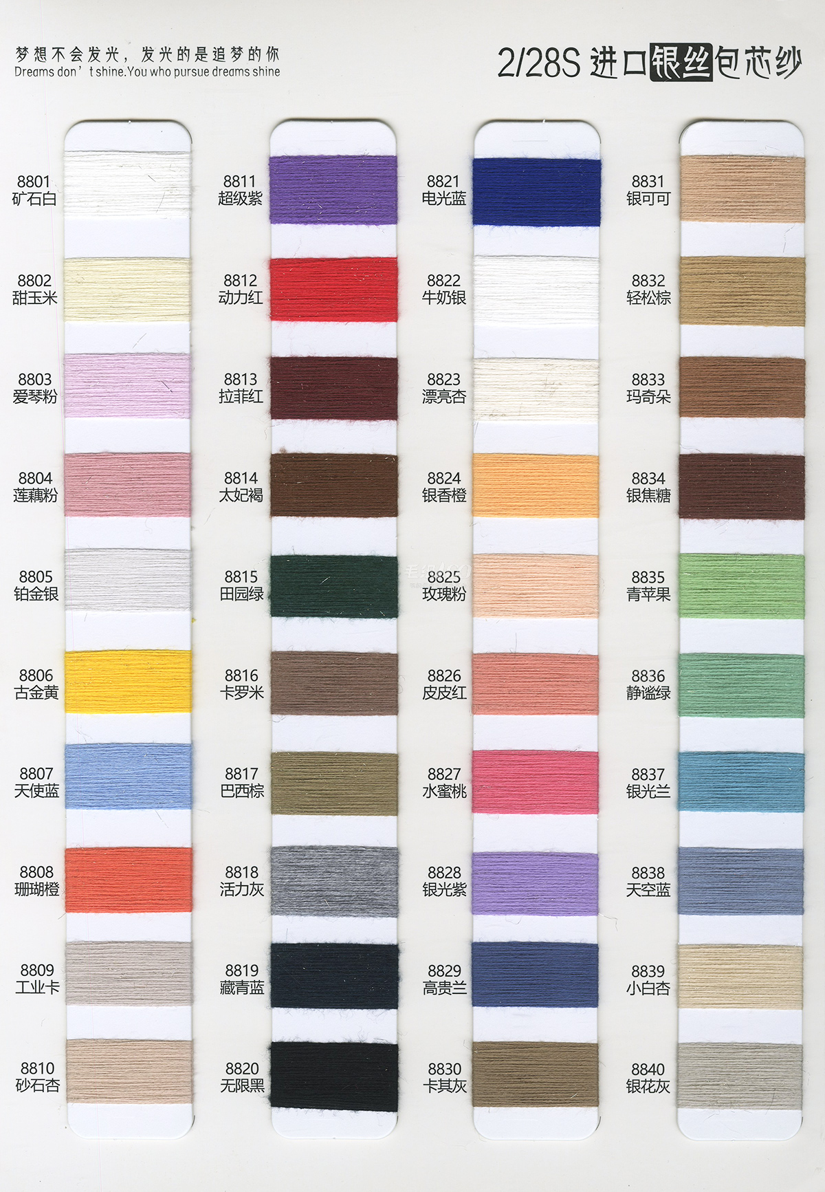 銀絲北極絨、金銀絲羊毛混紡、閃光包芯紗、銀絲包芯紗、金絲包芯紗、紫光包心紗、藍絲包芯紗、高捻銀絲包芯紗、高捻彩金包芯紗、3股銀絲包芯紗、羊毛圈圈紗、銀絲星星絨、彩點黑點北極絨、彩點安哥拉纖絨紗、銀絲安哥拉、閃光安哥拉、彩點黑點安迪絨高比例色紡馬海毛、高比例羊駝馬海毛毛、超細羊駝毛