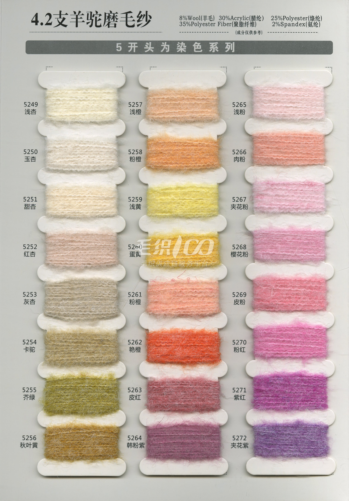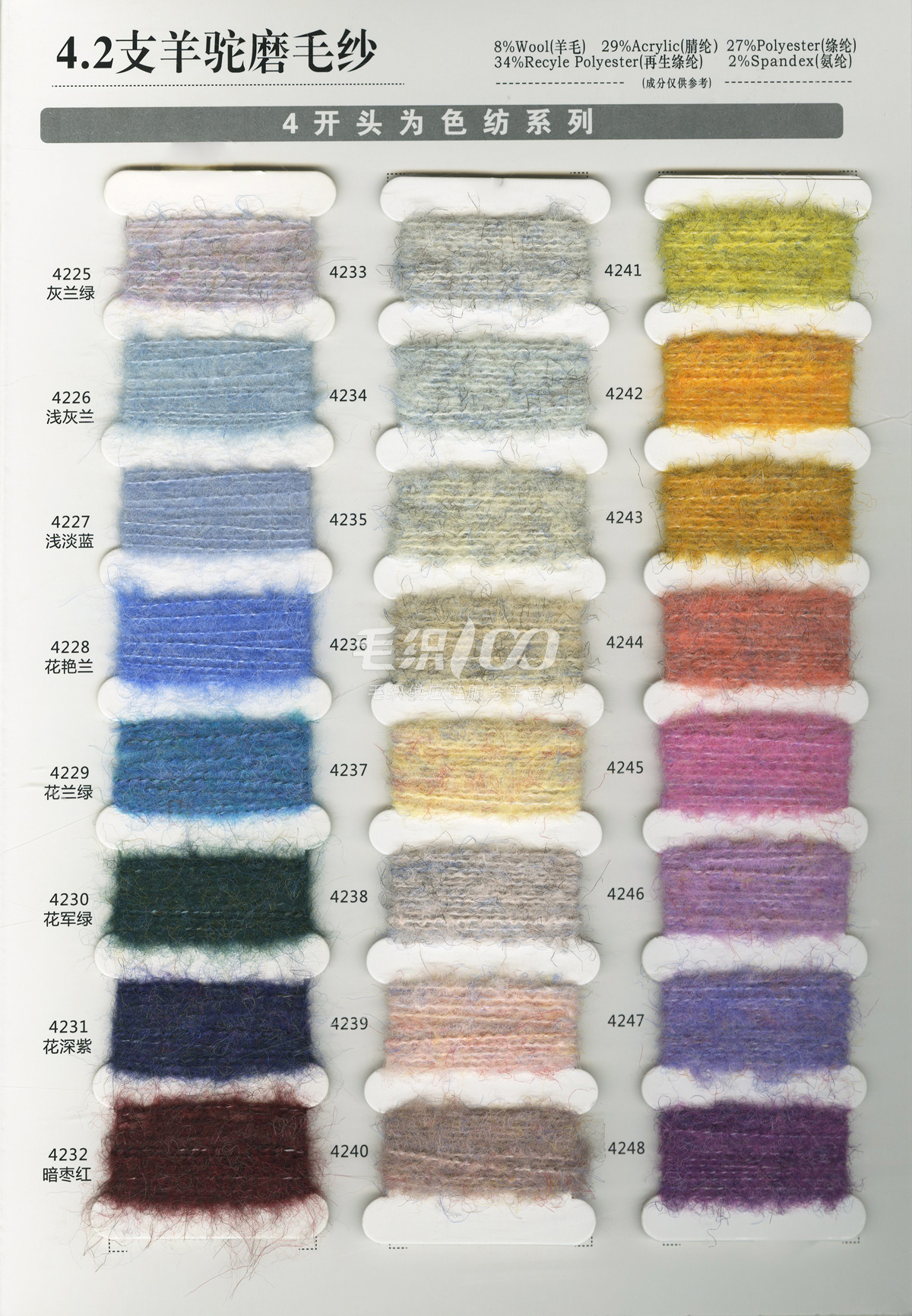 馬海毛色紗系列,羊駝毛色紗系列,磨毛紗色紡系列,仿牛絨色紗,珠片系列色紗,圈圈紗系列,6%9%羊毛緄紡紗色紡系列,可來樣訂染 ,胚紗批發(fā)。
