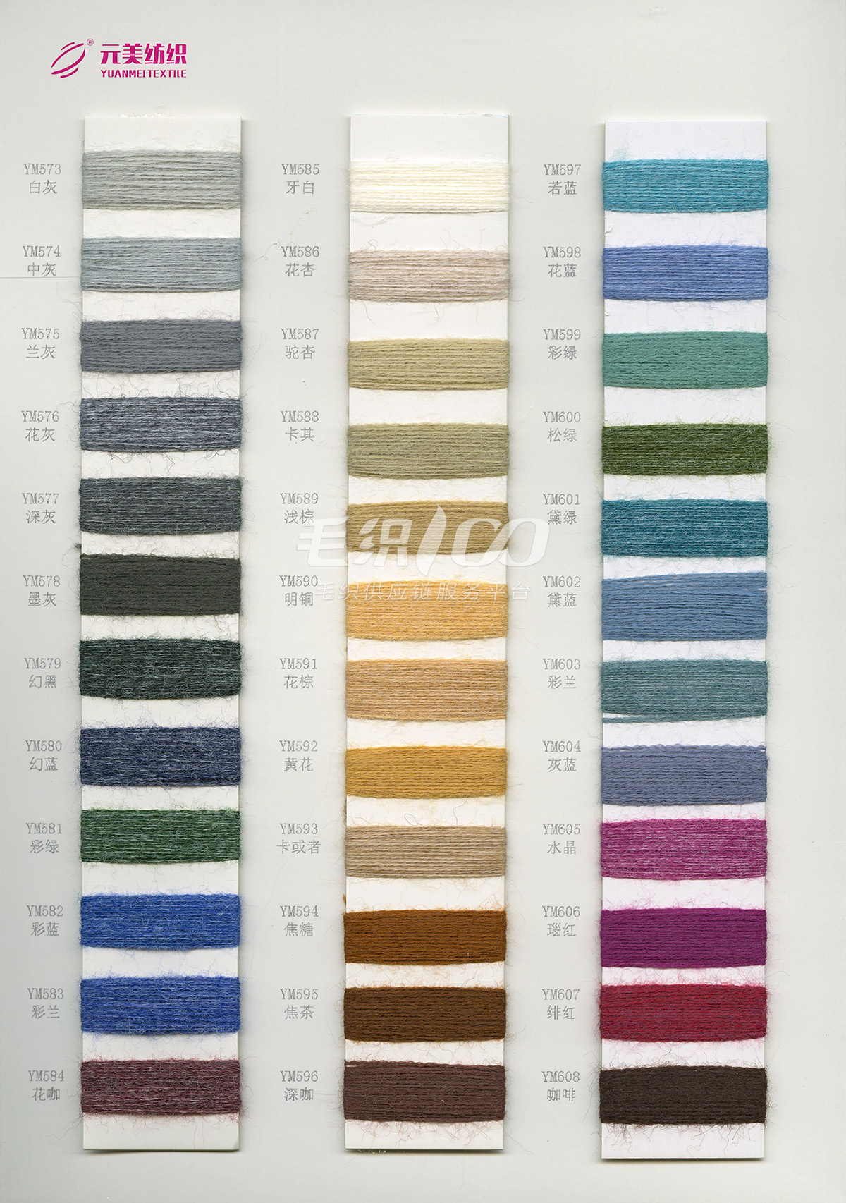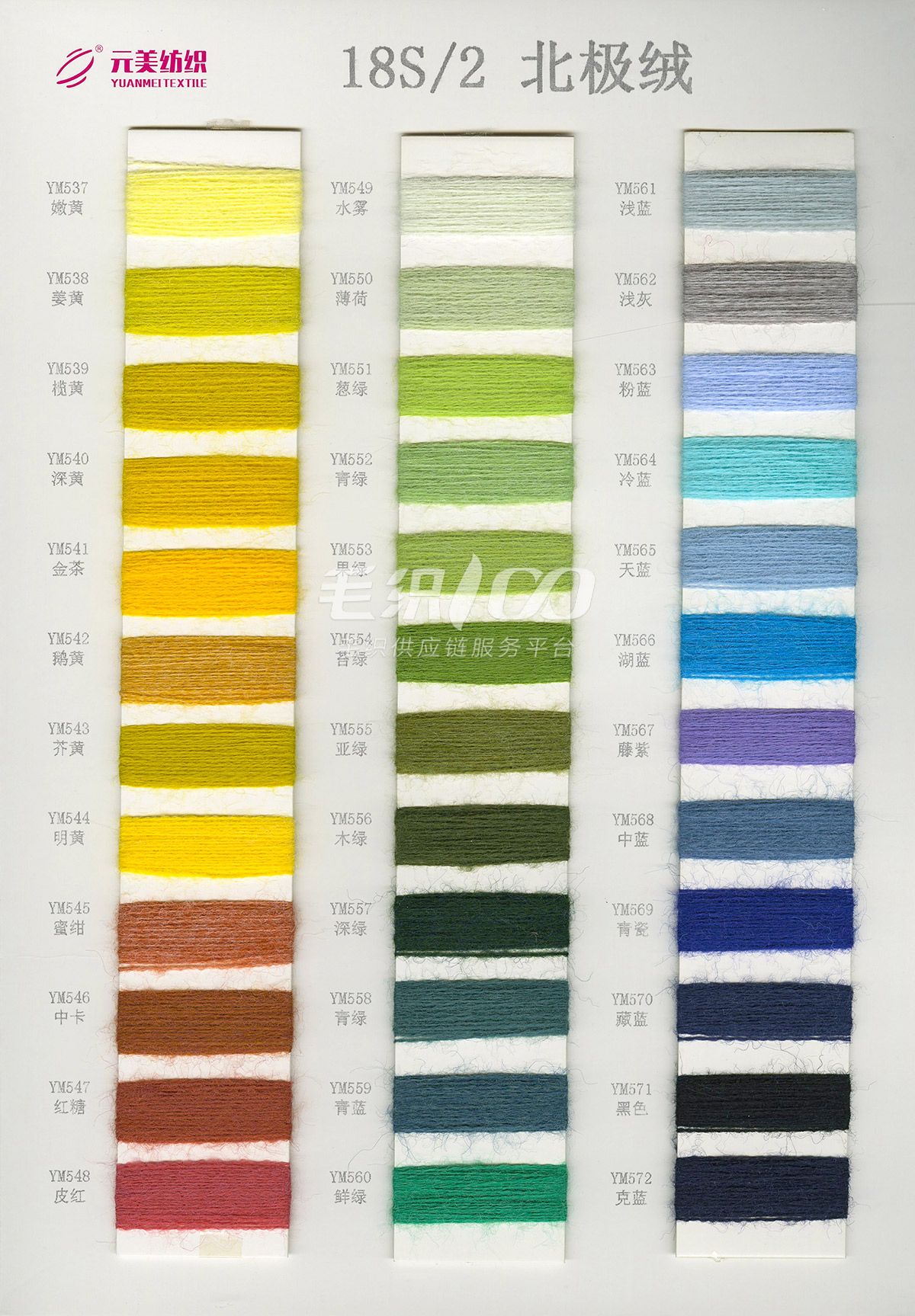 28S/2晴棉、單股羊絨、3.0珠片紗、高彈包芯紗、32S/2仿絲光棉、1.3公分仿貂、30S/2彩點絲光棉、2支雪尼爾、漸變馬海毛、1.8支段染灌芯紗、雪點紗、32S/2無染彩棉、澳尼絨、30S/2絲光棉、24S/2雙曲、20支彈力馬海毛、15支彈力馬海、棉羊毛、24NM/1仿亞麻等產品
