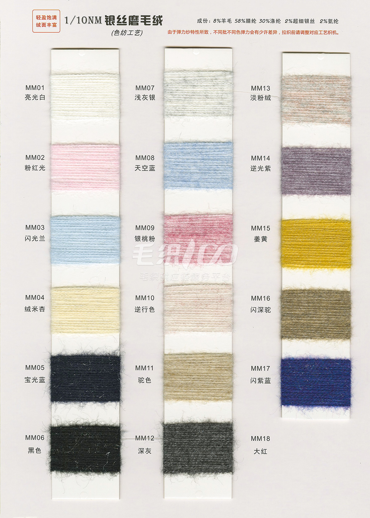 一. 流行花式紗線(中低價位):磨毛紗、拉毛紗、圈圈紗、噴毛紗 ; 二. 高品質(zhì)常規(guī)料:包芯紗、北極絨(綿羊絨); 三. 膨體紗線:絲光膨體羊毛、新型膨體羊毛、膨體棉晴 。