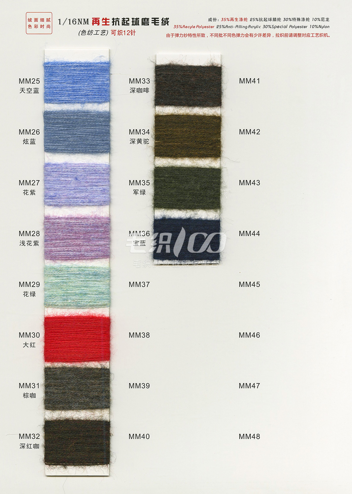 再生抗起球磨毛紗