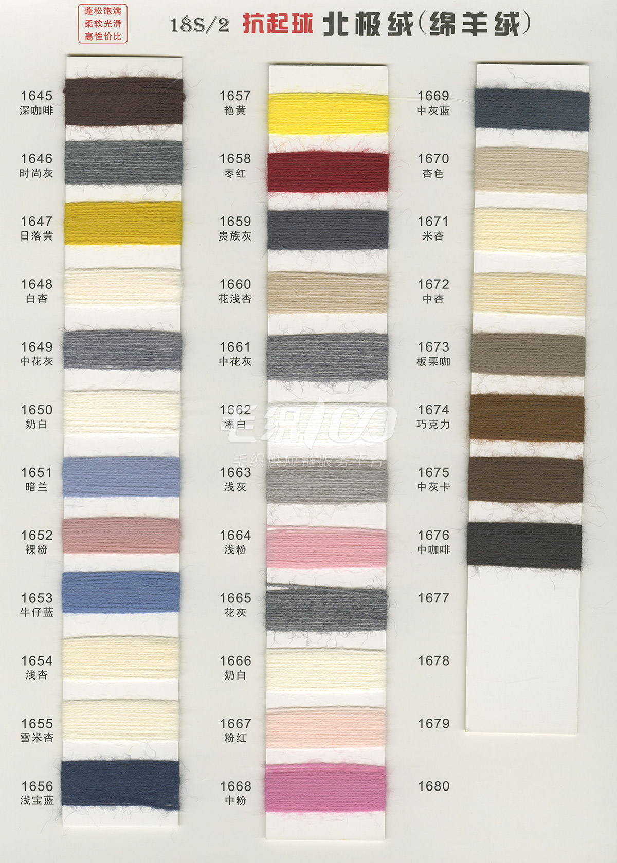 一. 流行花式紗線(中低價位):磨毛紗、拉毛紗、圈圈紗、噴毛紗 ; 二. 高品質(zhì)常規(guī)料:包芯紗、北極絨(綿羊絨); 三. 膨體紗線:絲光膨體羊毛、新型膨體羊毛、膨體棉晴 。