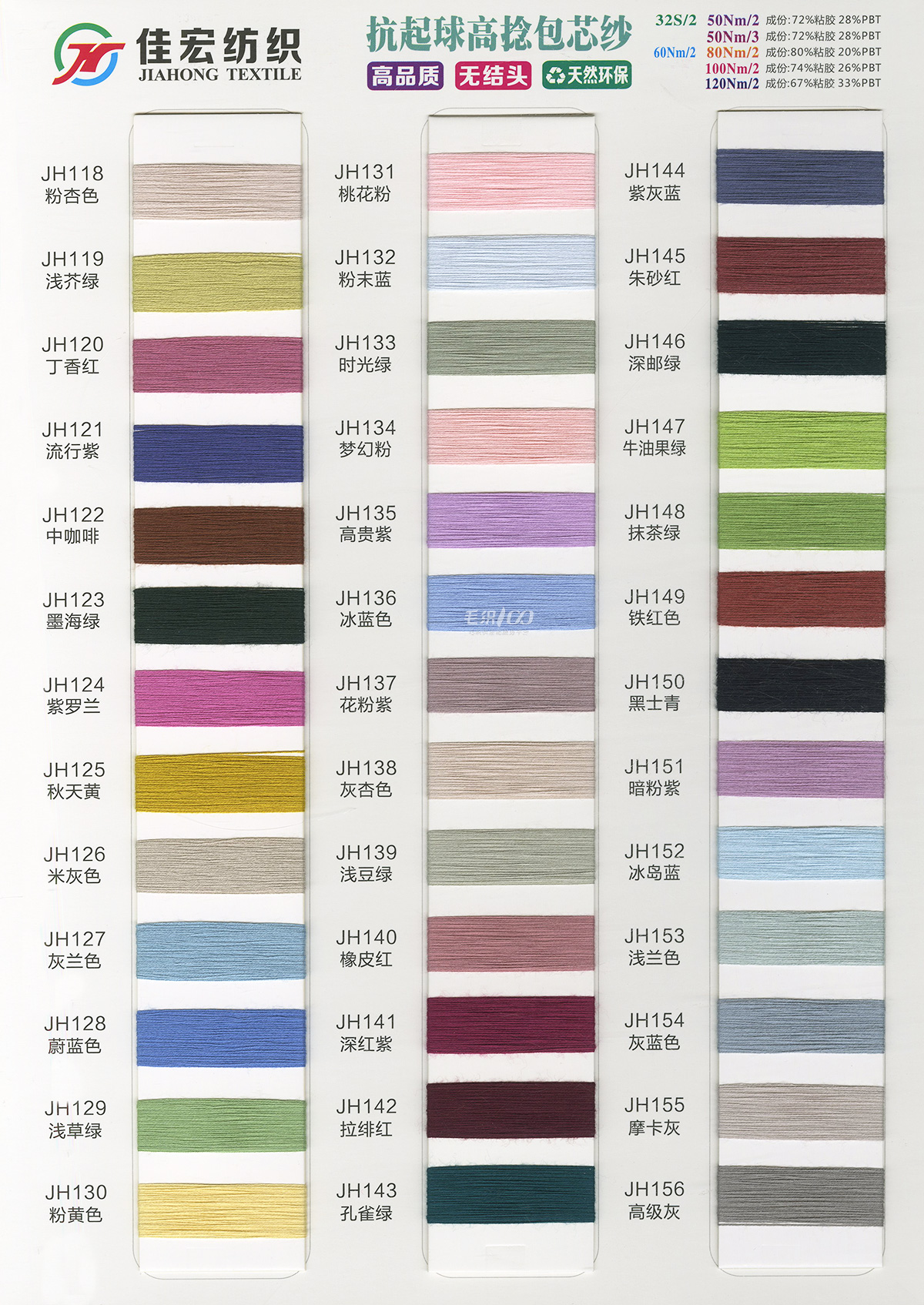 抗起球腈綸包芯紗、抗起球安哥拉纖絨紗、七彩包芯紗、莫代爾包芯紗、曲棉、AB包芯紗