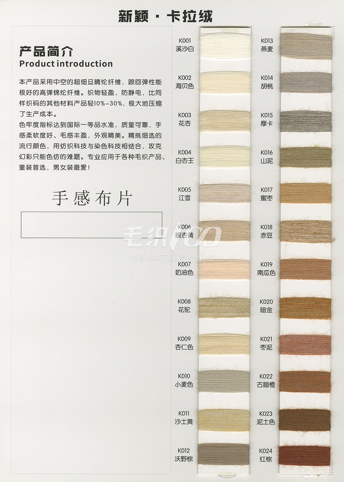 包芯紗系類;馬海毛系類;各類花式紗 兔絨包芯紗、七彩花式包芯紗、兔毛包芯紗、巴素蘭羊毛、長纖仿羊絨、有色精梳棉、膨體真三七、有色雙曲、絲光美麗奴羊毛、高檔半精兔絨、高端山羊絨