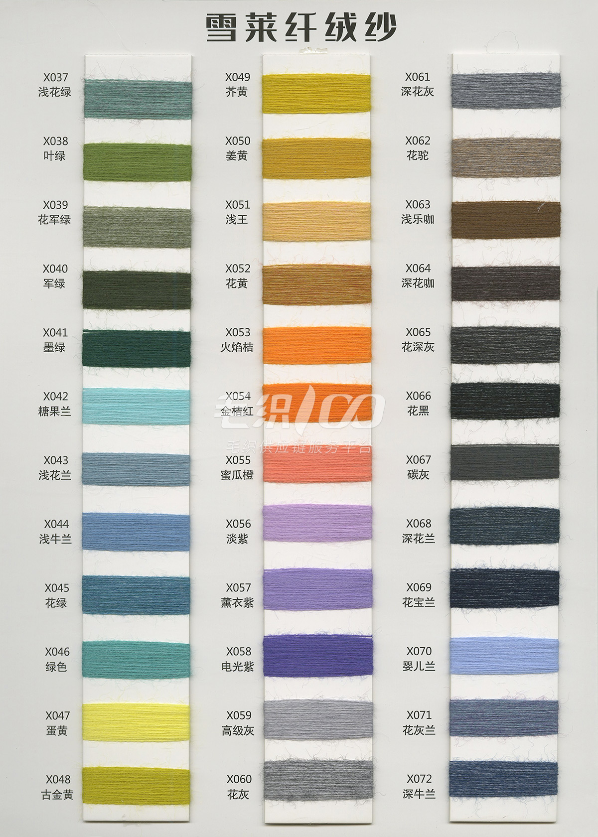 包芯紗系類;馬海毛系類;各類花式紗 兔絨包芯紗、七彩花式包芯紗、兔毛包芯紗、巴素蘭羊毛、長纖仿羊絨、有色精梳棉、膨體真三七、有色雙曲、絲光美麗奴羊毛、高檔半精兔絨、高端山羊絨