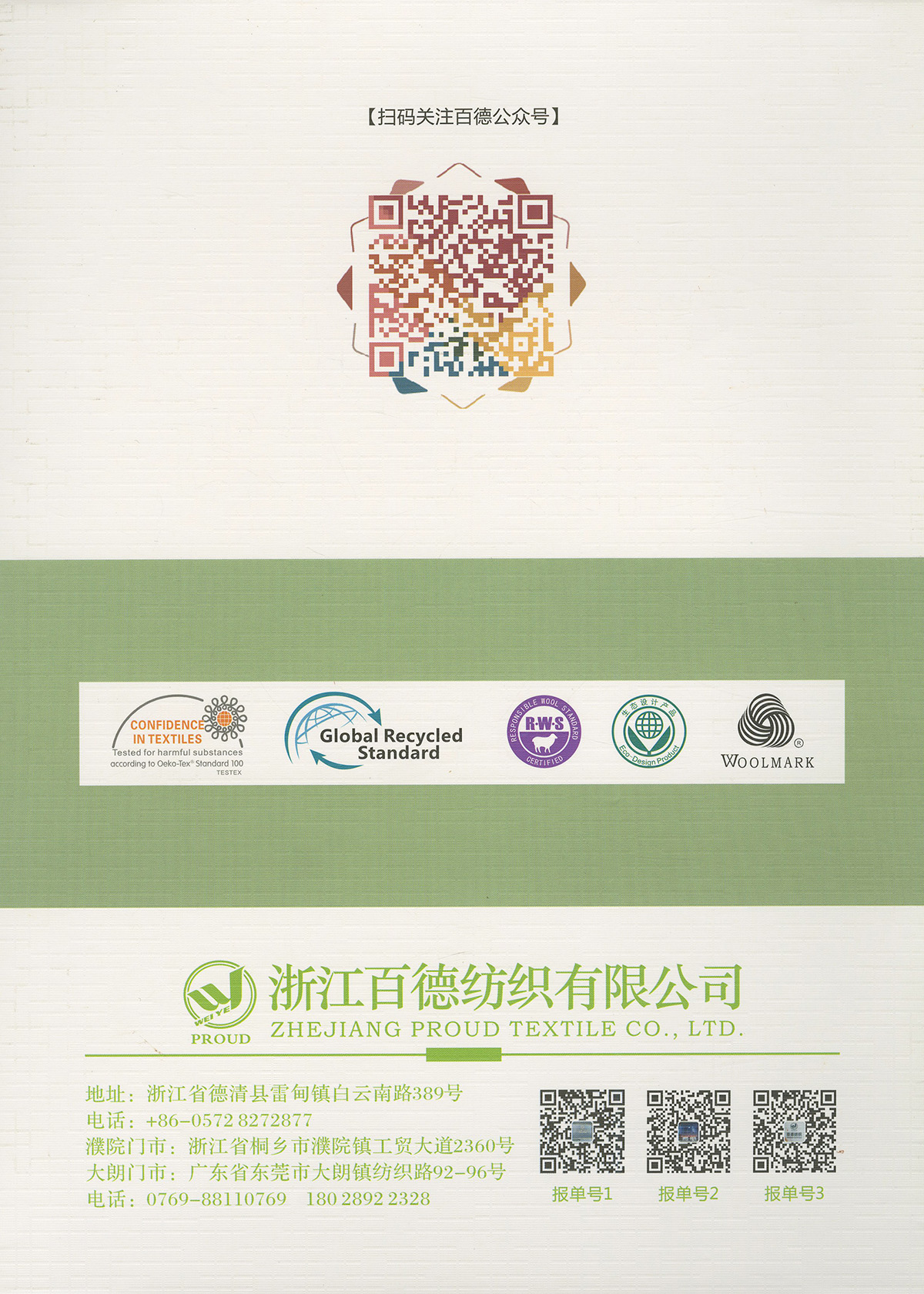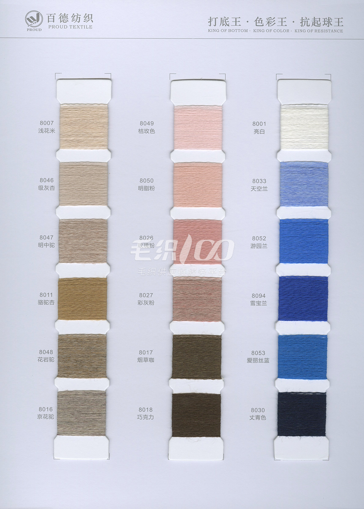 專注中高端羊毛羊絨:半精紡系列 2/45NM 升級版6羊毛,2/48NM 親膚9羊毛,2/48NM 抗起球30羊毛,2/17NM 2/26NM 100%純羊毛, 2/26NM 5%山羊絨混紡,2/26NM 10%山羊絨 90%羊毛 2/26NM 30%山羊絨 70%羊毛