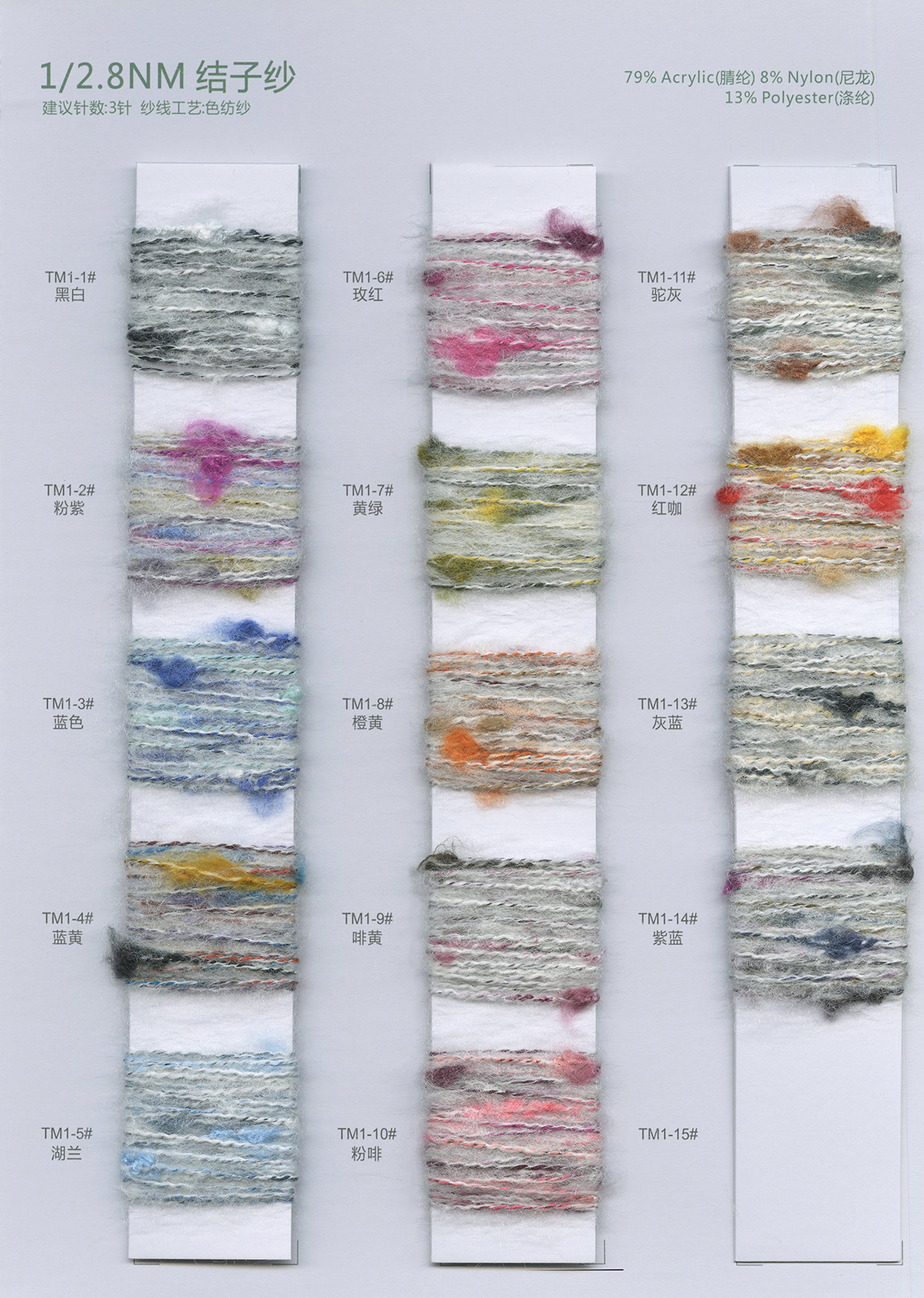 馬海毛系列中有: 1/28NM南非超細(xì)小馬海、 1/16NM超柔馬海毛、 1/14NM愛爾蘭馬海毛、 1/13NM漸變馬海毛、1/3.5NM彩絨馬海毛、 5.5支/13支高-中-低比例羊毛馬海毛....... 羊駝毛系列中有: 1/3NM吉祥羊駝、 1/13NM三葉草羊駝、1/12.5Nm南美羊駝毛、1/7NM櫻花羊駝毛、1/5.5NM孔雀羊駝毛......
