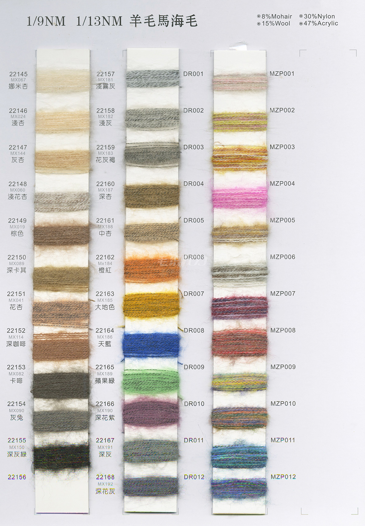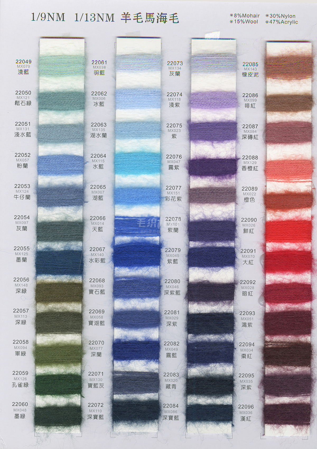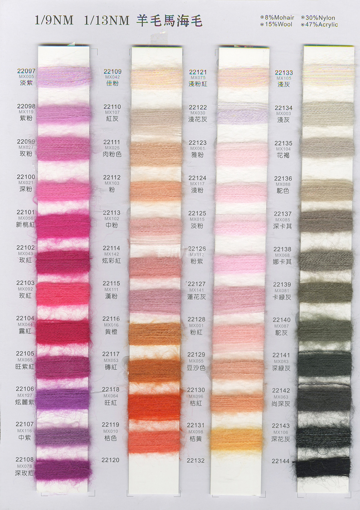 花式紗,羊毛馬海毛,彈力馬海毛,兔絨,噴毛紗,貓毛,包芯紗,羽毛紗,大肚紗,冰島紗,仿亞麻,空心棉,雙曲,冰曲,蝴蝶紗,玻璃紗,結子棉