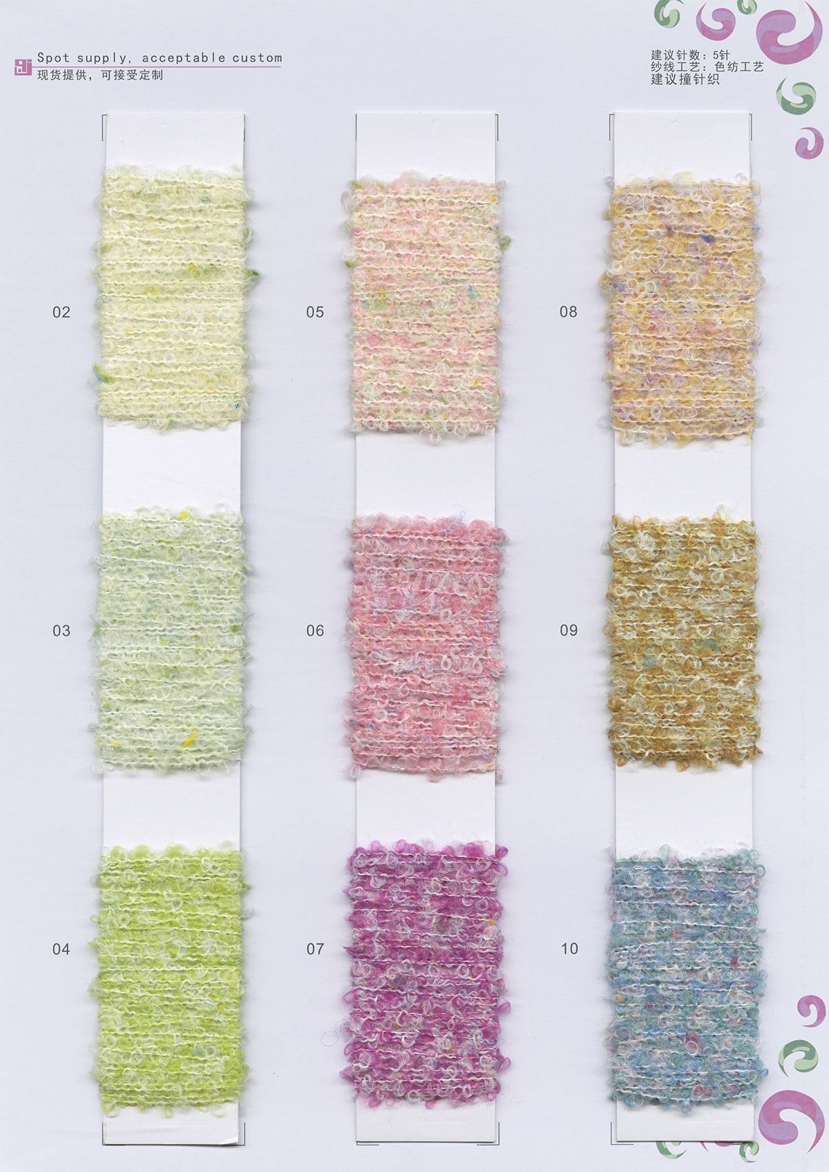 磨毛紗系列、圈圈紗、再生系列、漸變紗、段染紗、新型網紅紗、花式特種紗、羊毛羊絨、高端春夏紗等專業各種奇形怪狀紗線訂制,有求必應,沒有搞不定