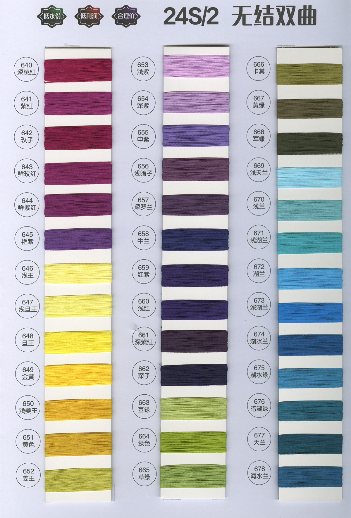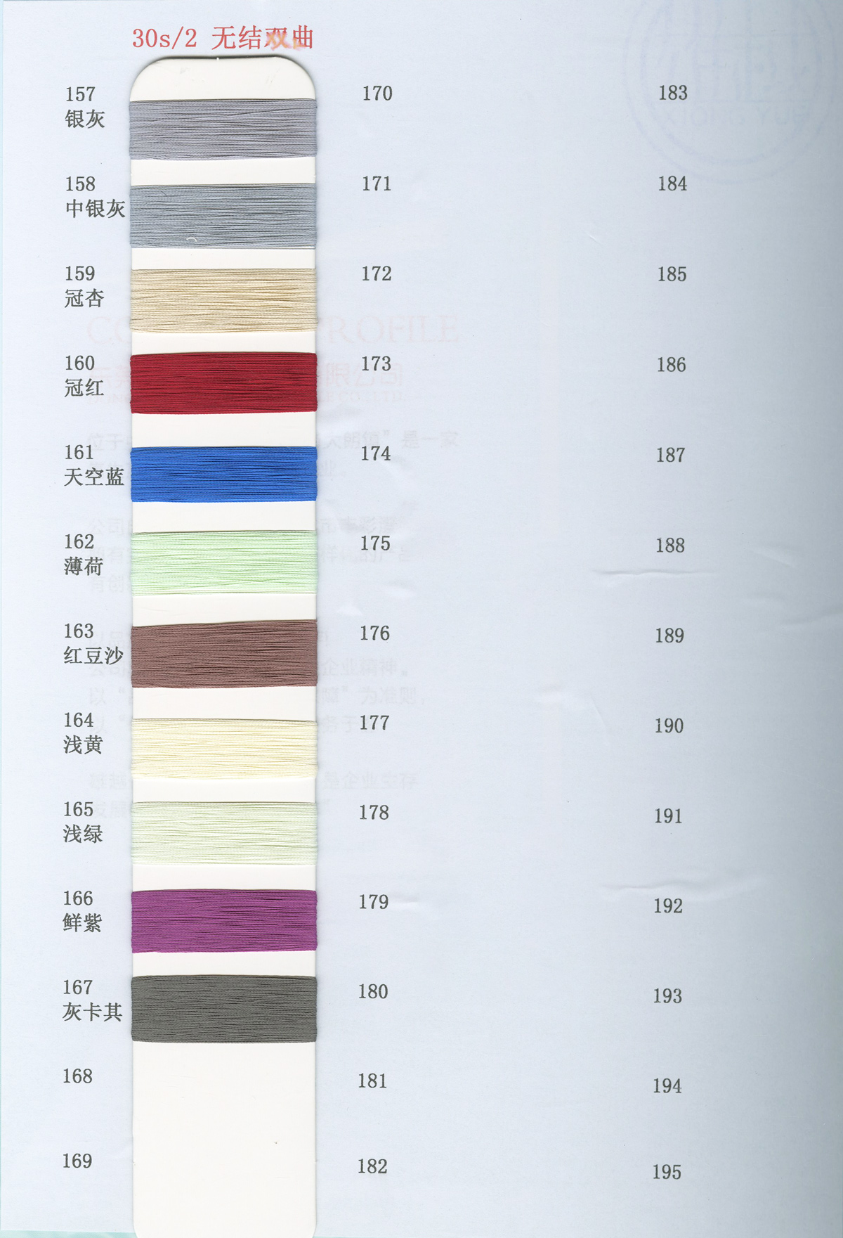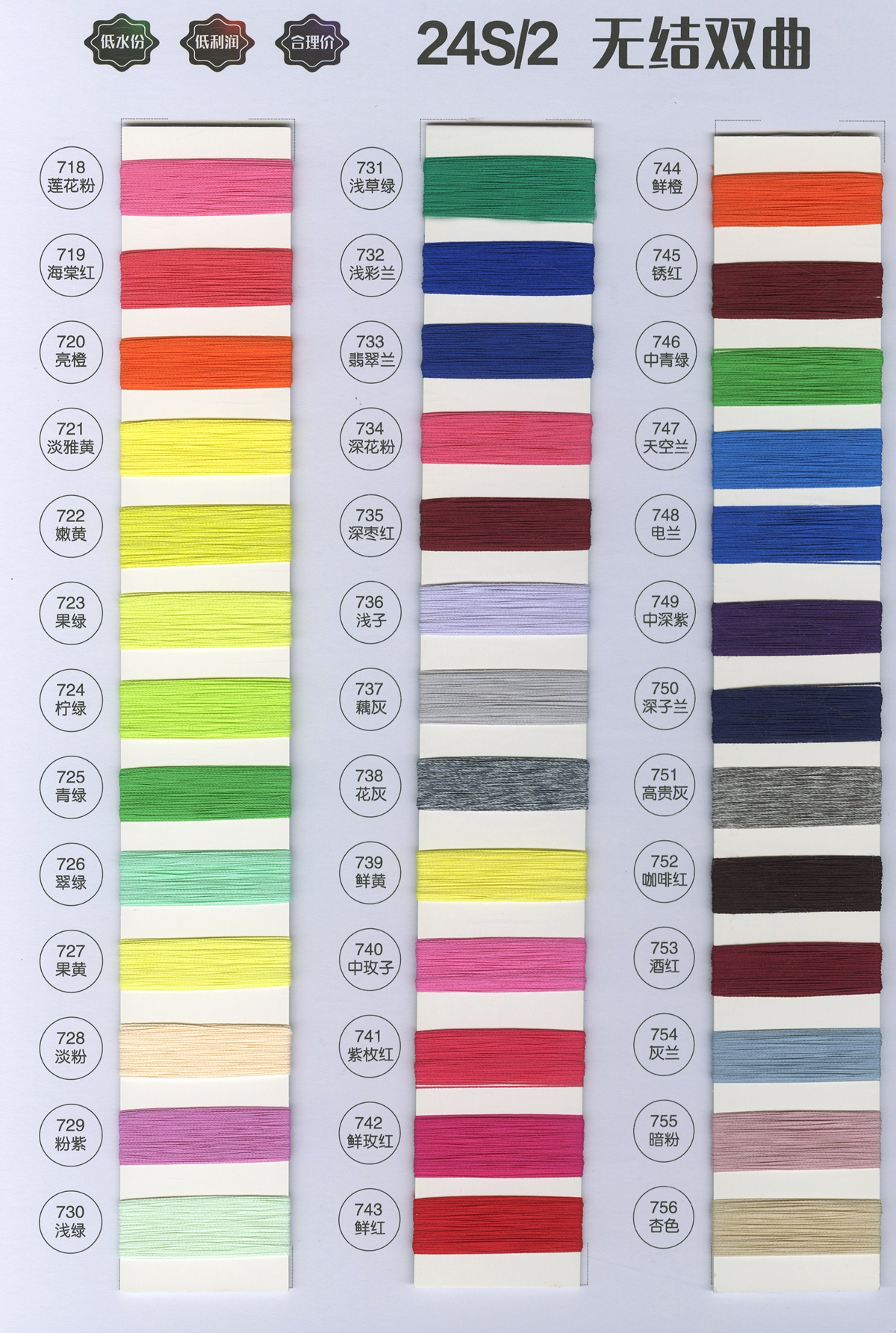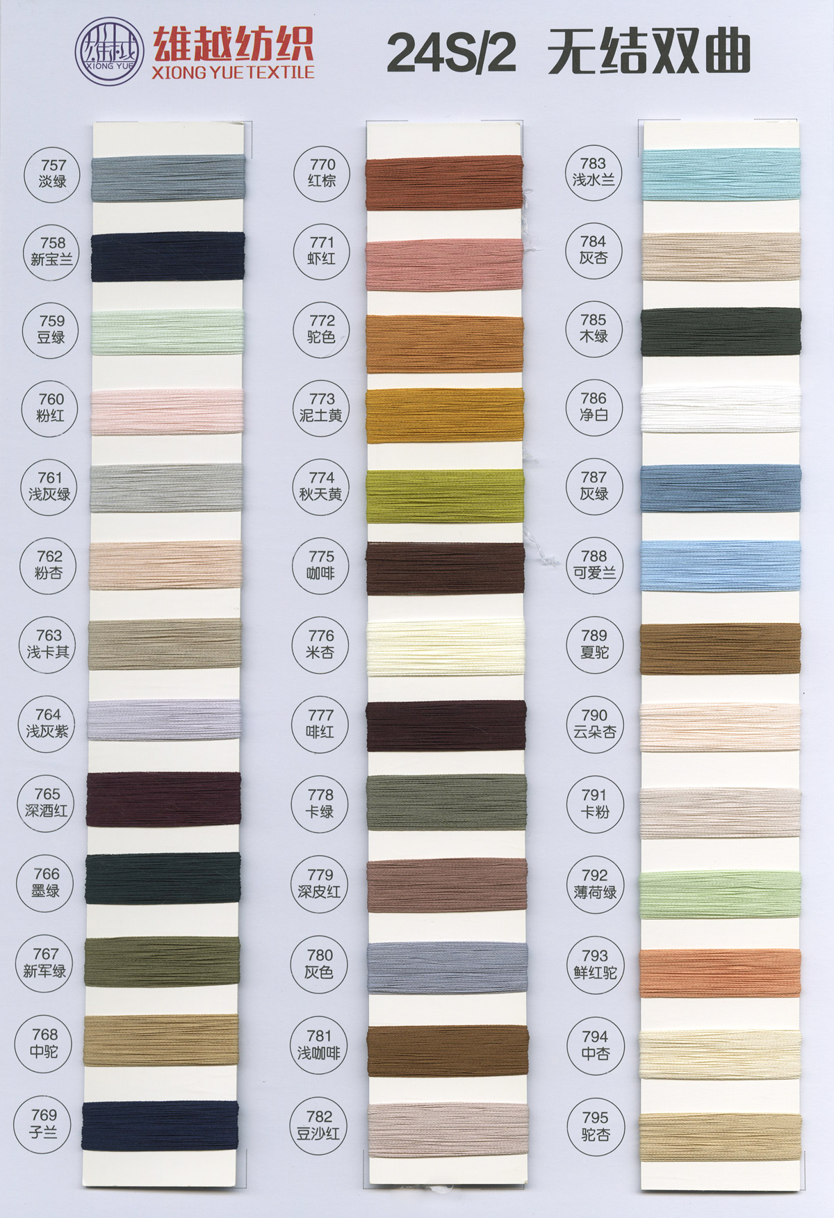 一、天絲系列:高捻·天絲、天絲索羅娜、6%天絲羊絨、萊賽爾、漸變·天絲; 二、高捻包芯紗系列:32支、50支、60支、80支; 三、抗起球系列:莫代爾、安哥拉、雅絲棉、冰絲、漸變·冰絲; 四、包芯紗系列:兔絨、高彈、北極絨;