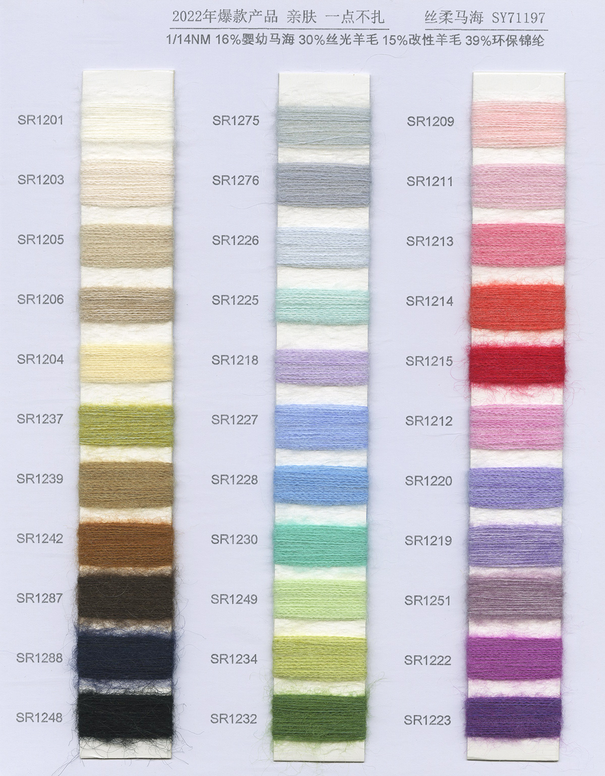 牦牛絨、貴族馬海、駱馬絨、親膚羊駝、BB羊駝、超細馬海毛、飄逸羊駝、金豹絨、再生彩虹紗等