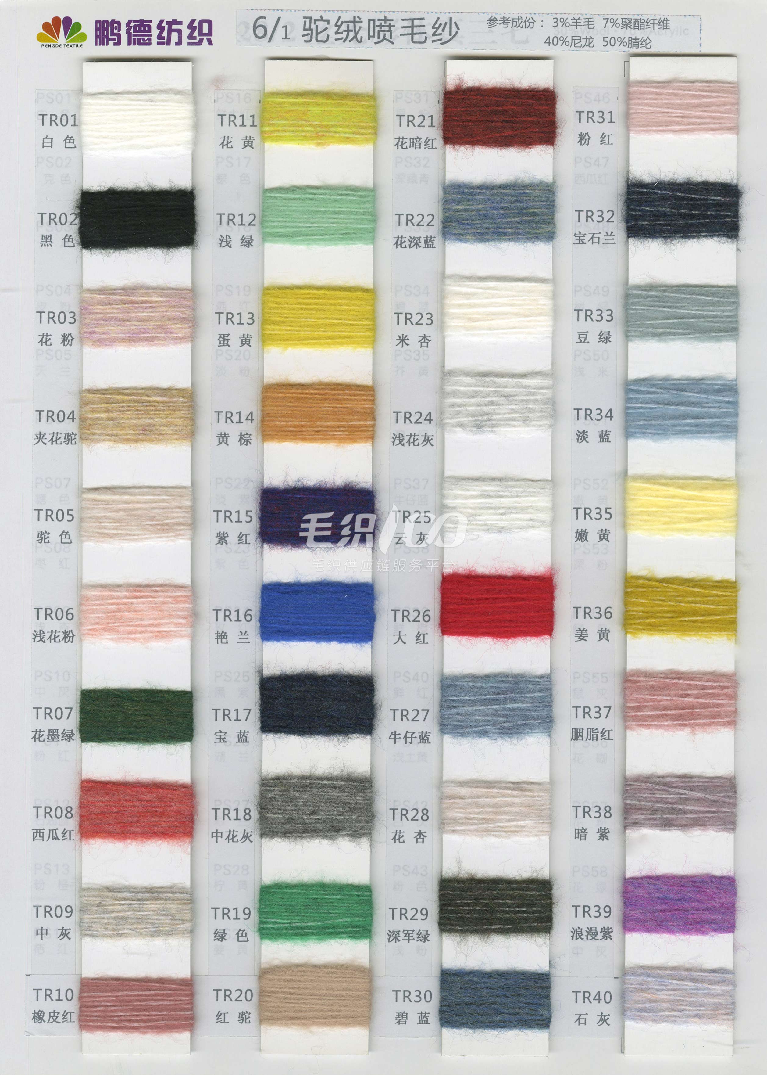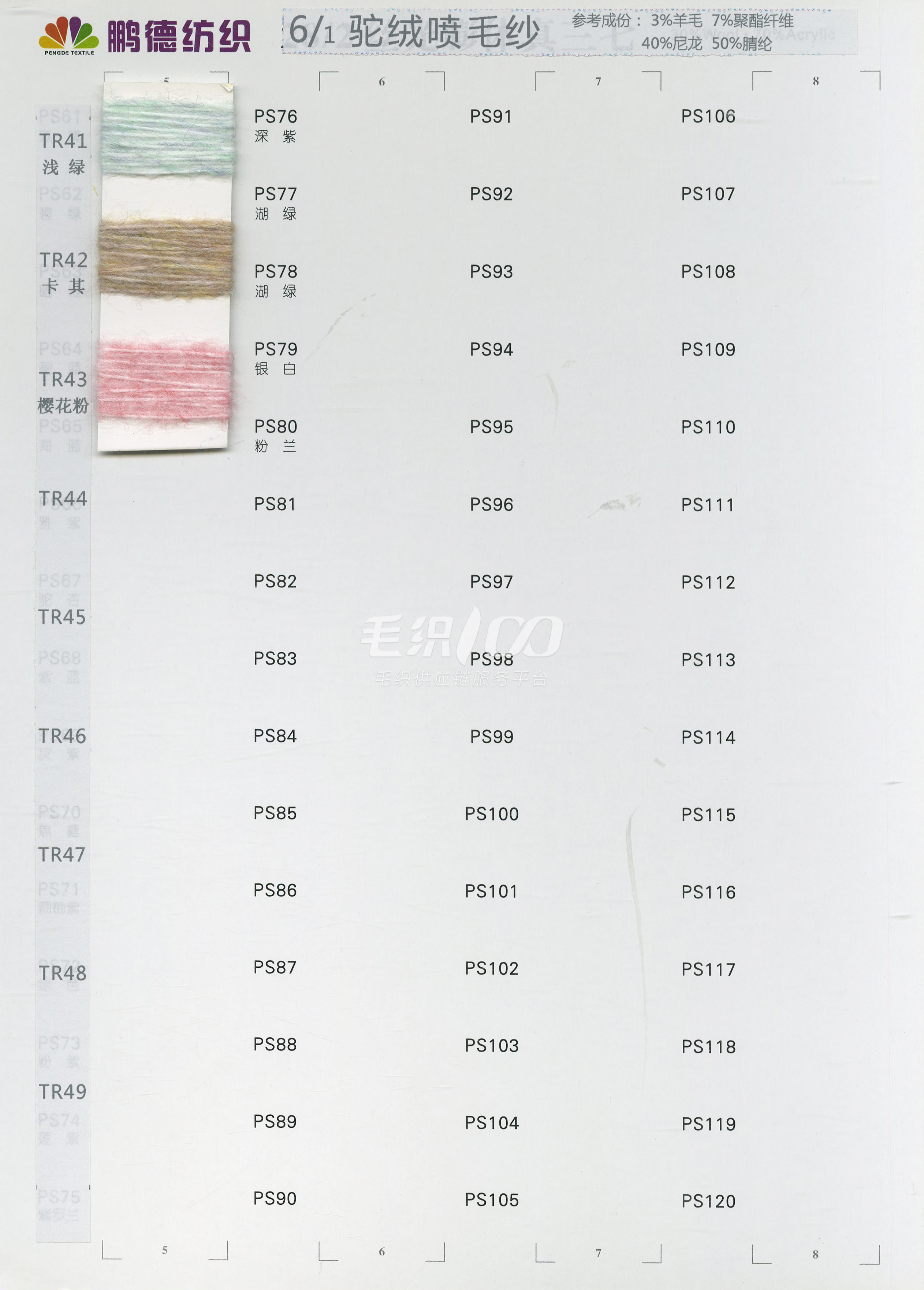 24/2 精品短貂絨A貂、B貂 、24/2精品浣熊絨、24/2走錠澳毛絨、26/2臻品羊毛絨、13.5/2 長毛水貂絨 10% .5% .3% 山羊絨混紡、 28/2 .30/2. 48/2 山羊絨棉、 28/2 絲光膨體五五毛、 24/2 28/2 膨體真三七、 15W:85