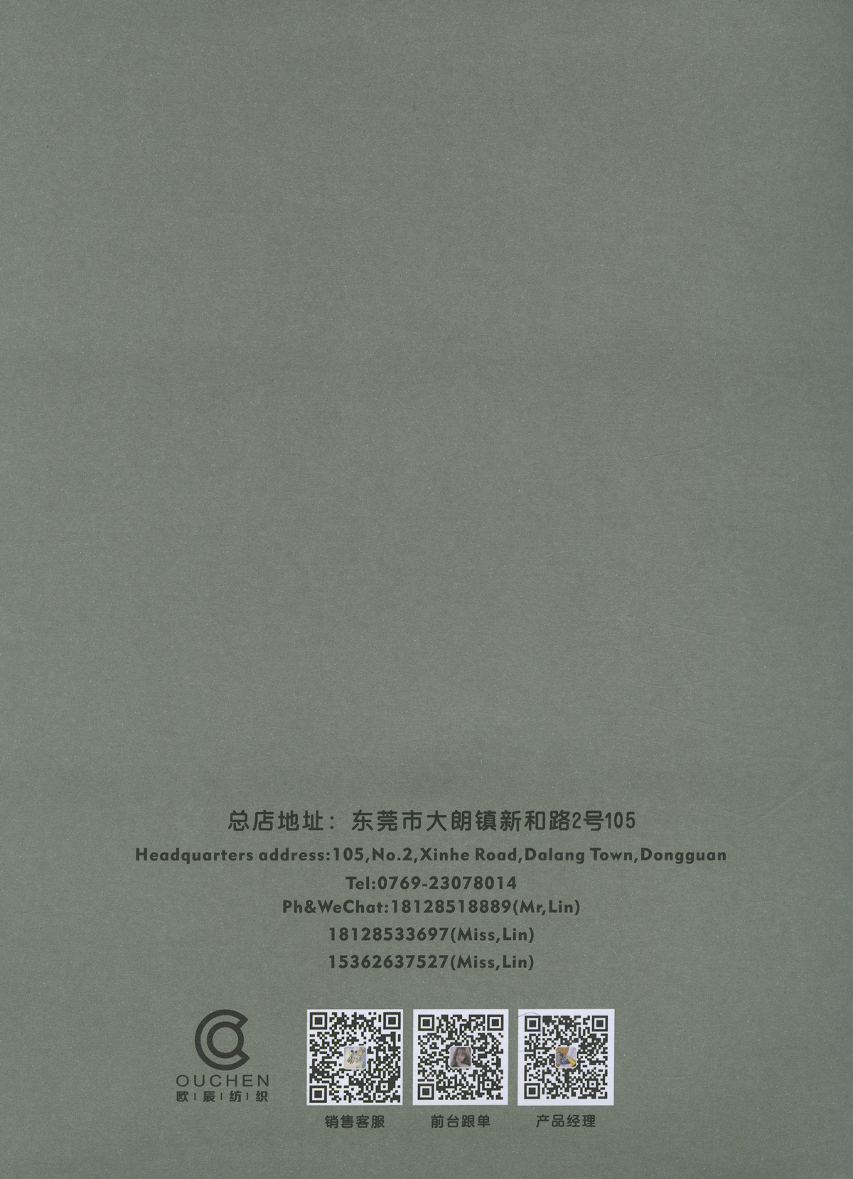 東莞市大朗鎮新和路2號105歐辰紡織