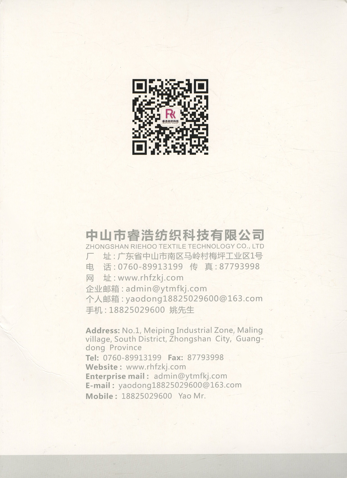 中山市睿浩紡織科技有限公司