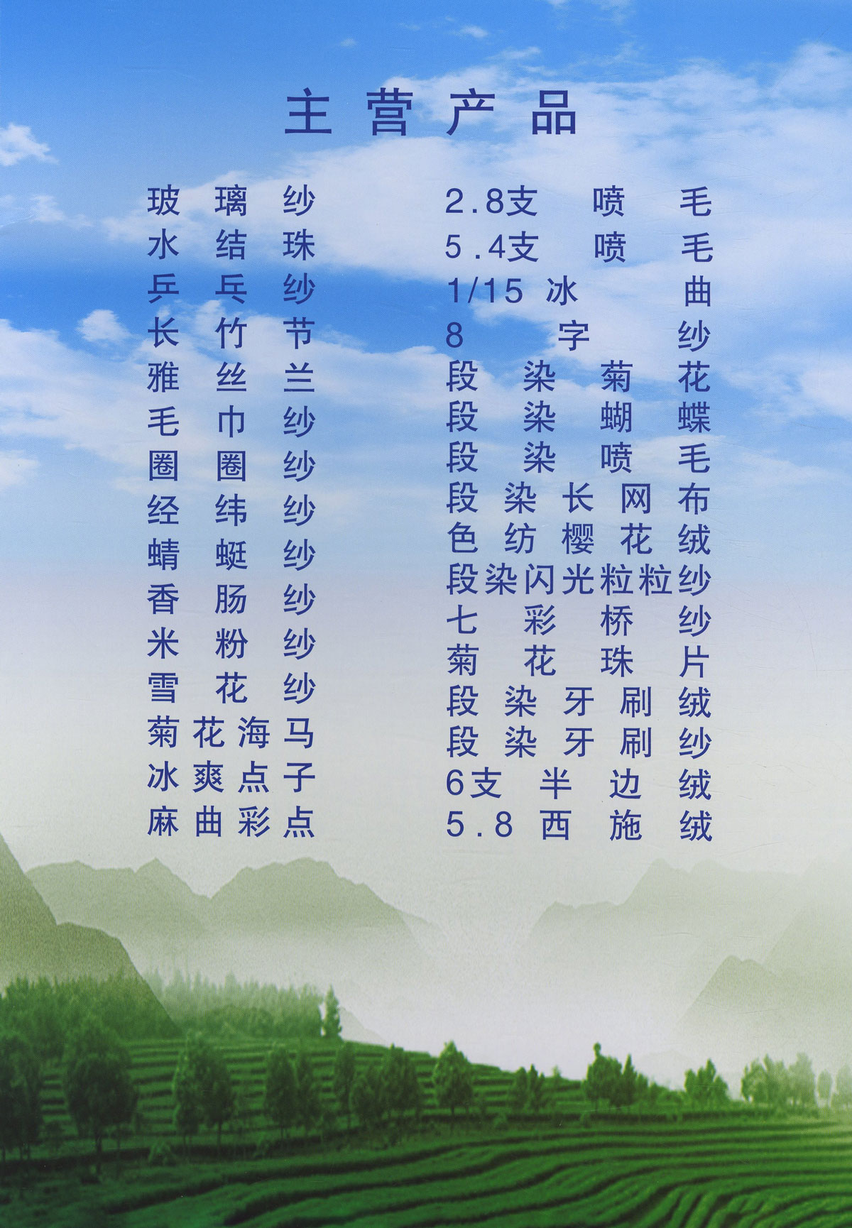 玻璃紗、水結(jié)珠、蝴蝶紗、閃光球毛、櫻花絨、牙刷紗、乒乓紗、冰島毛、段染紙片紗,段染二經(jīng)一緯