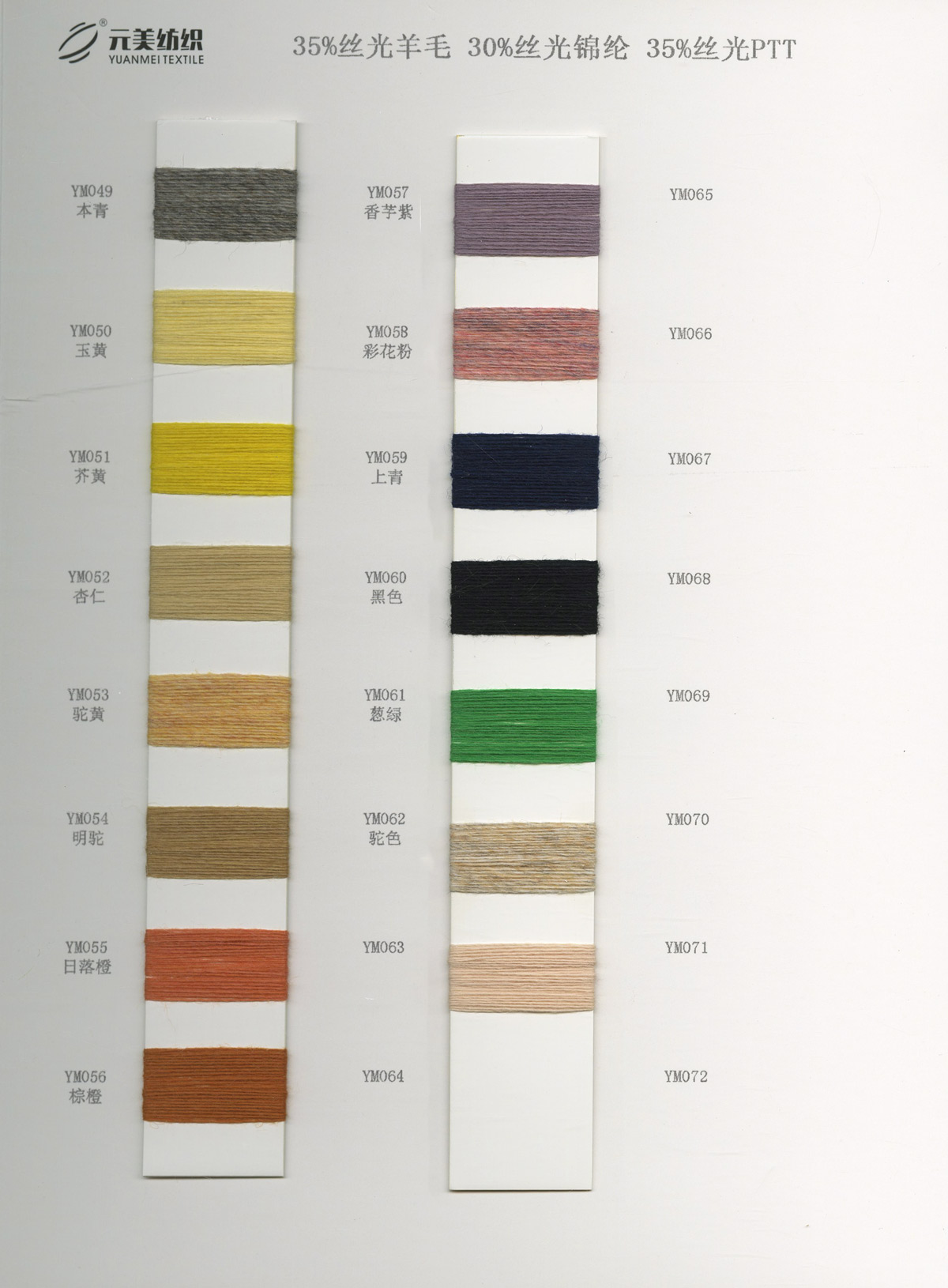 28S/2晴棉、單股羊絨、3.0珠片紗、高彈包芯紗、32S/2仿絲光棉、1.3公分仿貂、30S/2彩點絲光棉、2支雪尼爾、漸變馬海毛、1.8支段染灌芯紗、雪點紗、32S/2無染彩棉、澳尼絨、30S/2絲光棉、24S/2雙曲、20支彈力馬海毛、15支彈力馬海、棉羊毛、24NM/1仿亞麻等產品