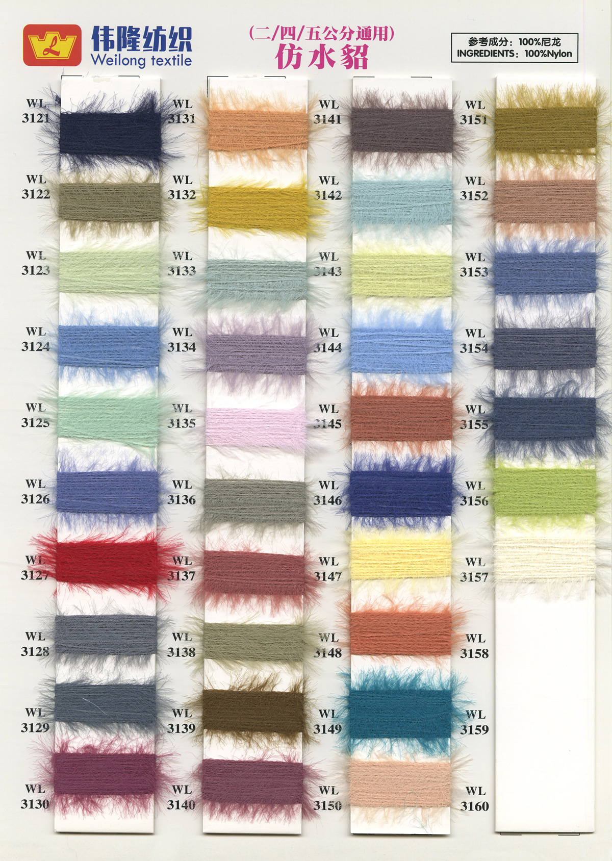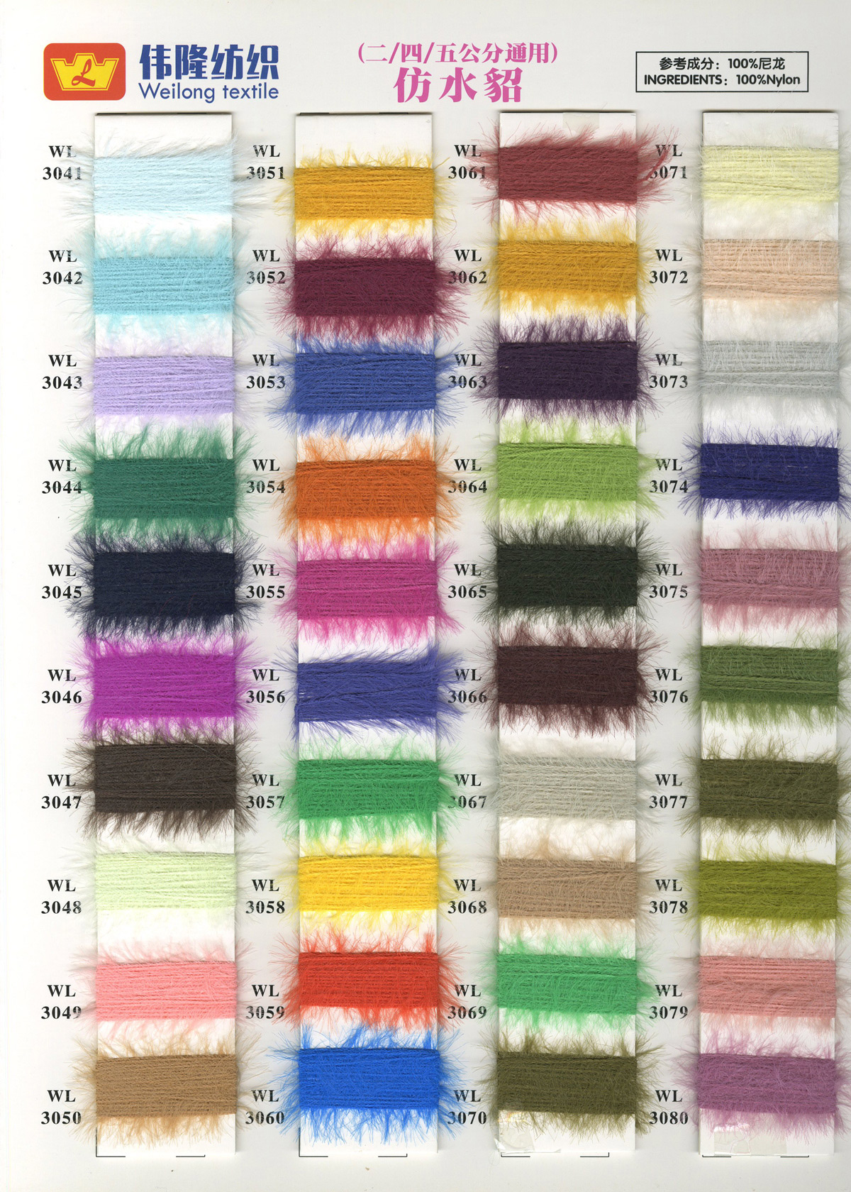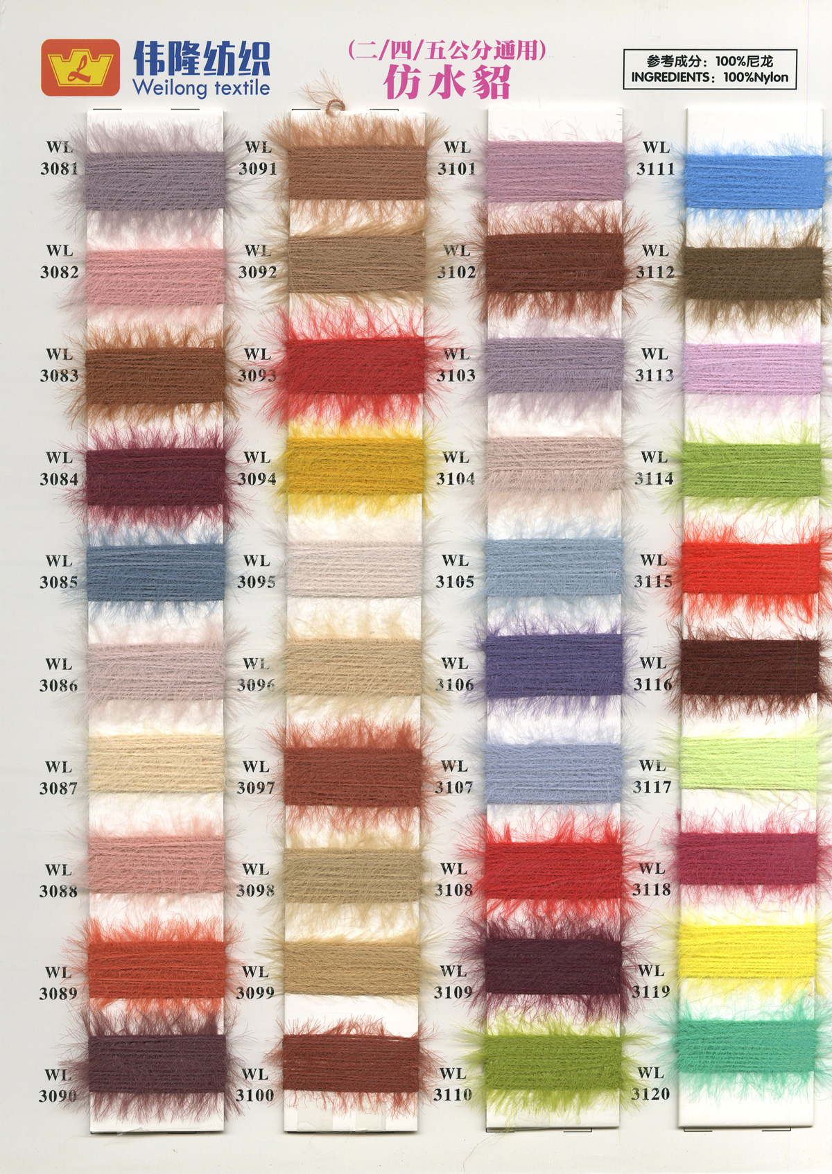 1/15NM冰曲(曲珠)、16S/2仿西班牙紗、28S/2精仿人造毛(腈綸)、18S/2抗起球北極絨、15支長毛馬海、28S/2抗起球安迪絨件染紗胚