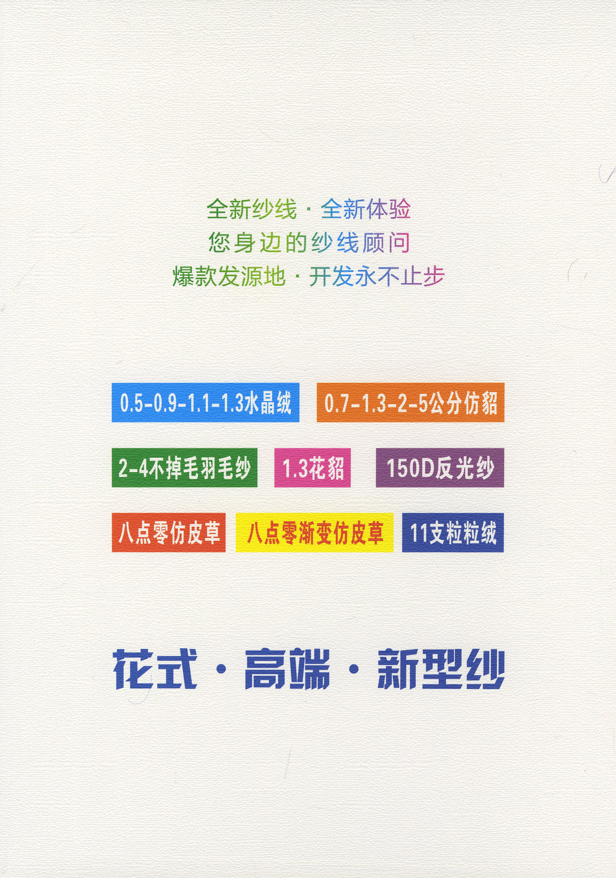 主營:6.8-13支麻爽棉曲 3.5支包纏紗 5支包覆紗 15支棉尼竹節圈圈 11支粒粒絨 6支中橋紗 5.2支燈籠紗 1.3-8公分仿貂 1.3-8公分銀絲亮片仿貂