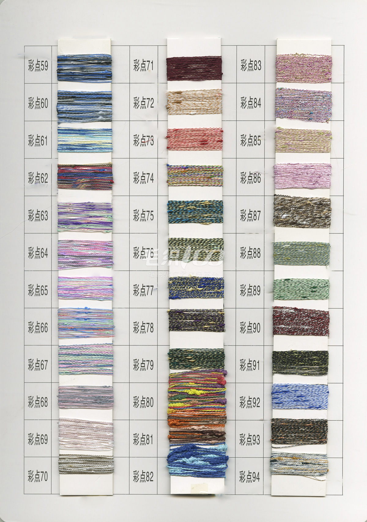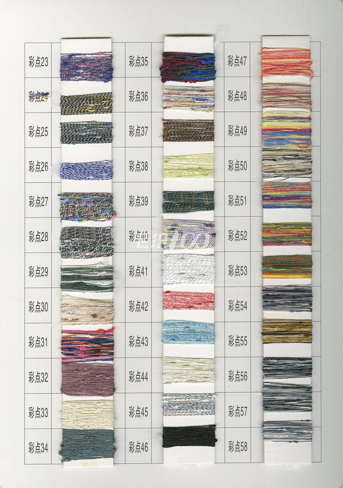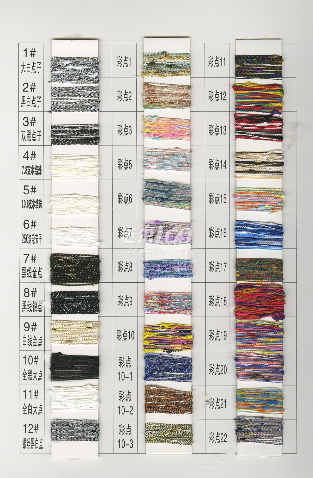 2/26羊絨風格100%超細羊毛、2/26羊絨風格50%超細羊毛、2/26澳毛絨35%超細羊毛、巴素蘭五五毛、巴素蘭三七、100%巴素蘭羊毛、綿羊毛、羊毛混紡紗、絲光柔軟膨體三七(五五),2/30(2/60支)絲光燒毛棉、1/27支(1/37)伊力特、雙曲(冰麻)