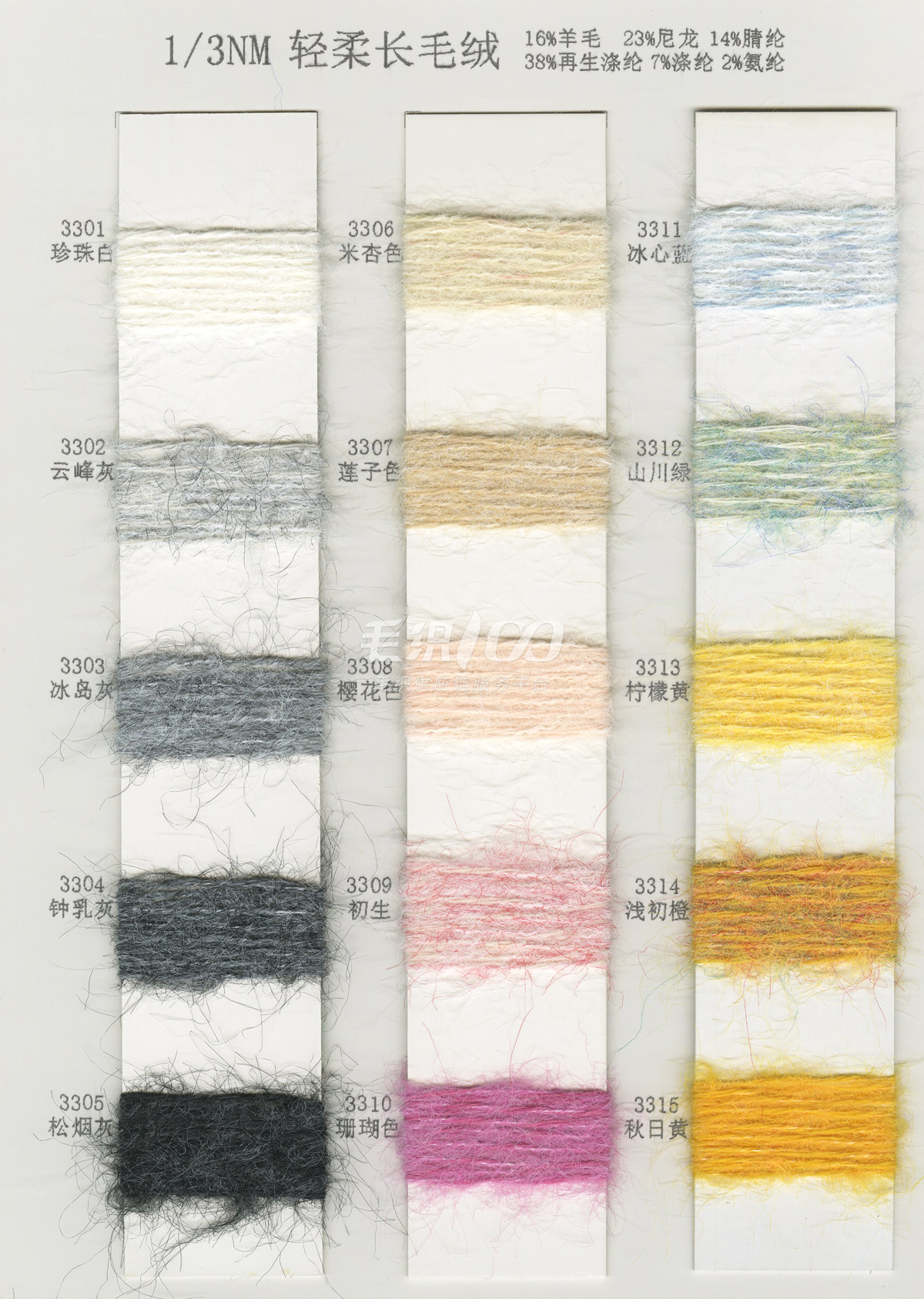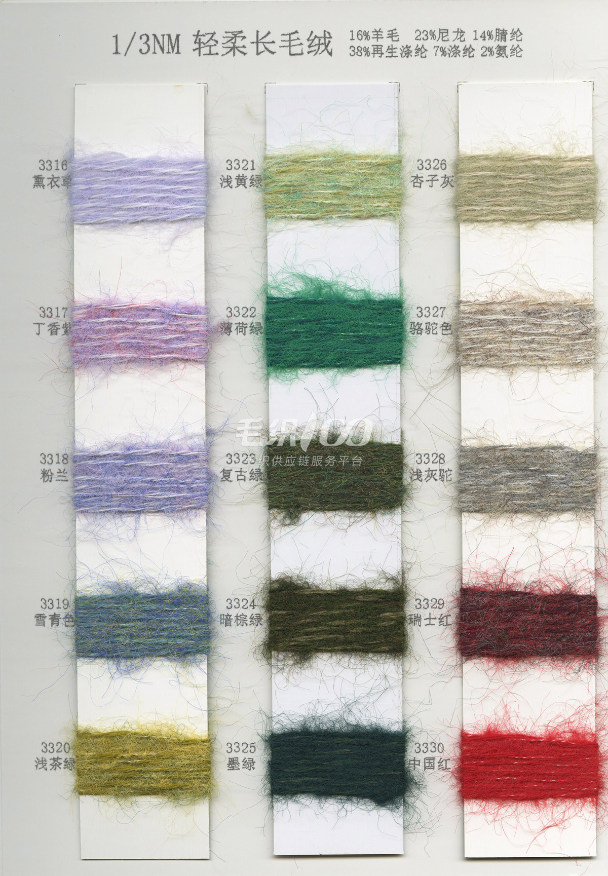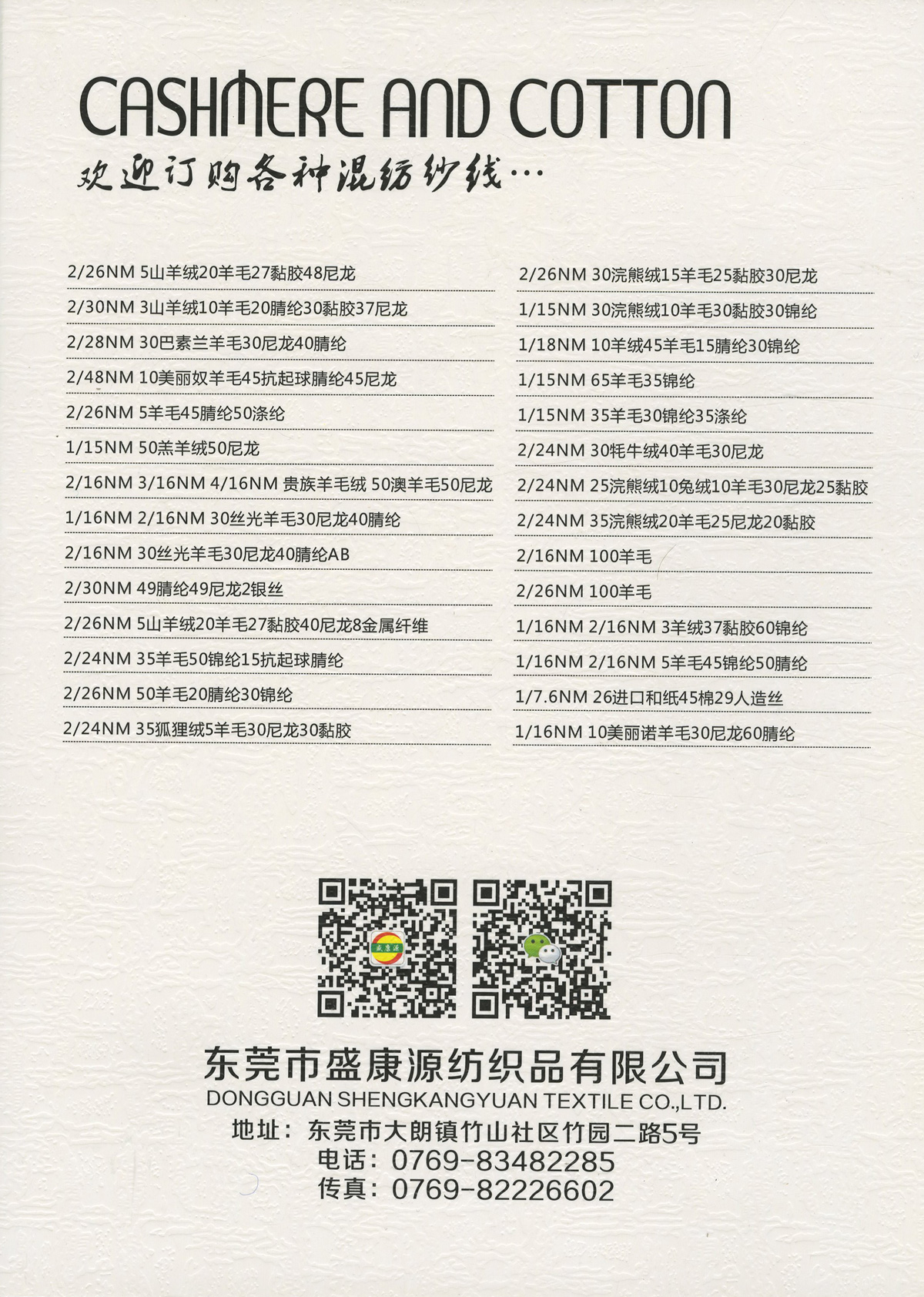 2/26NM克什米爾,2/26NM新型羊毛絨,2/30NM山羊絨混紡,1/16NM珠片紗 ,1/15NM羔羊絨混紡紗,2/13NM澳羊毛,2/28NM巴素蘭羊毛混紡,1/16NM 絲光防縮羊仔毛,2/24NM狐貍絨,2/16NM 絲光防縮羊仔毛幻彩紗,2/24NM 精品澳毛絨,2