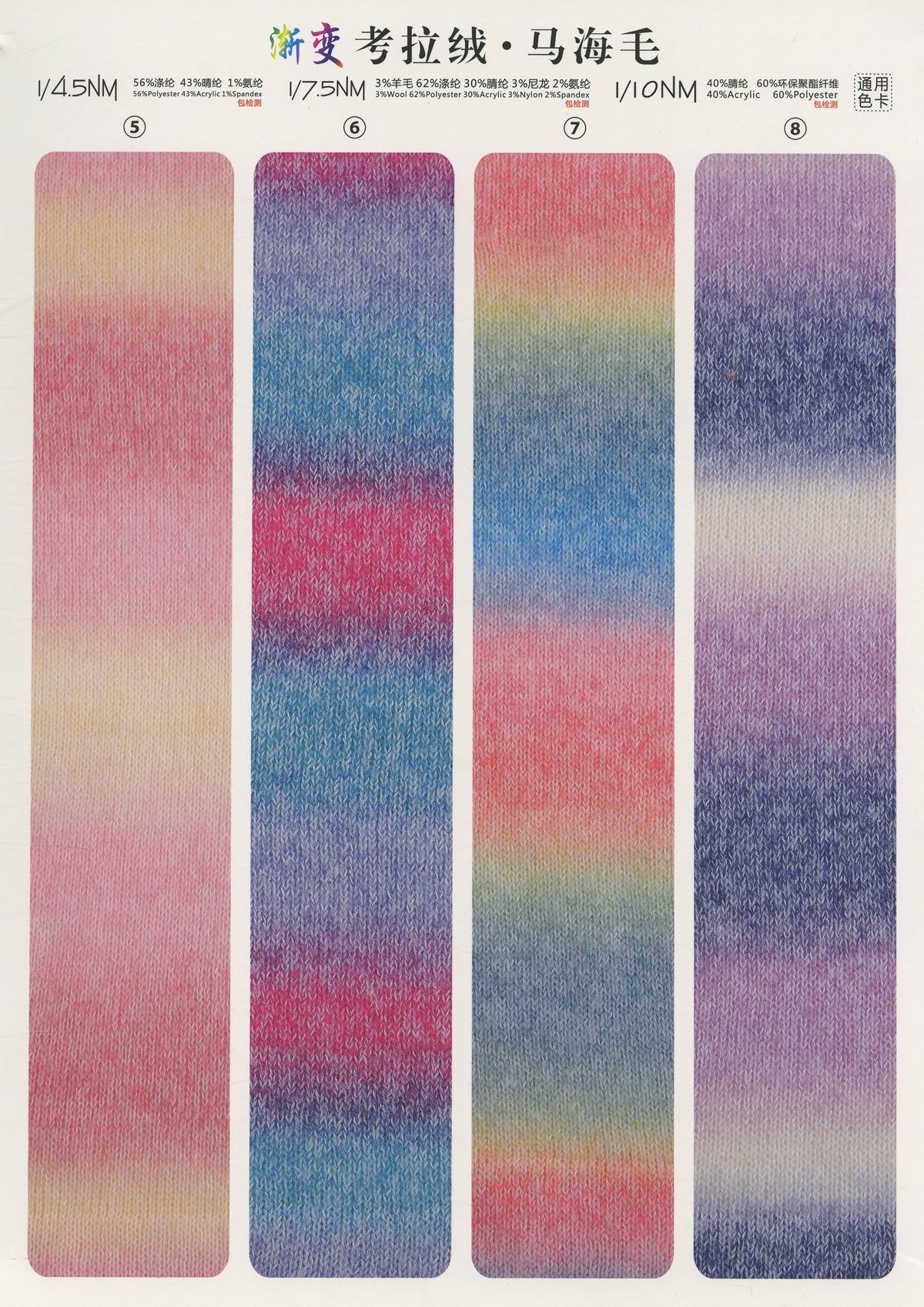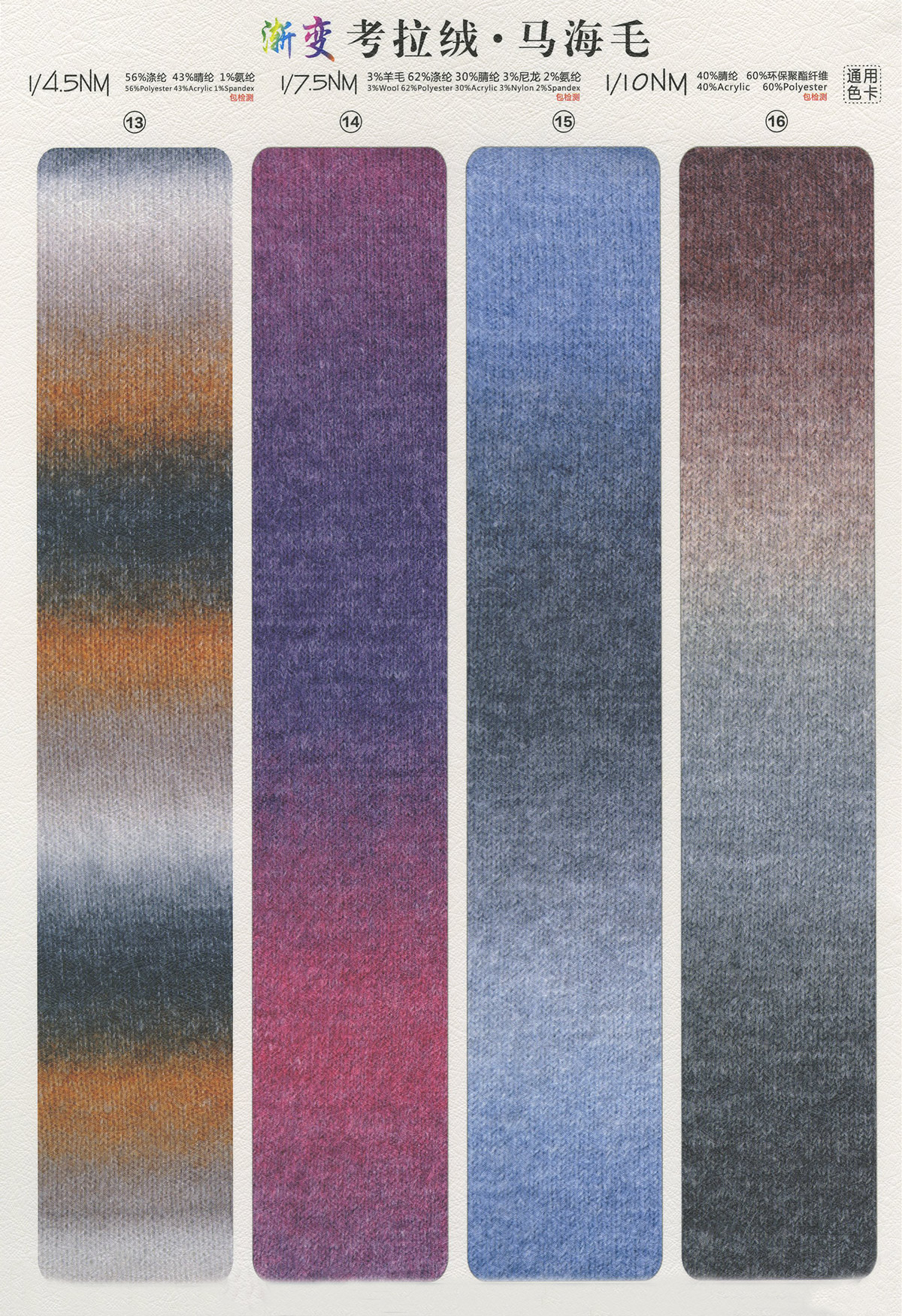 金銀空心帶、純棉空心帶、晴棉空心帶、晴綸空心帶、仿麻空心帶、銀絲北極絨、花式馬海毛、花式噴毛紗、花式羊駝毛、竹節棉、立體棉(多股棉)、高捻棉紗、高捻包芯紗、高捻晴棉、