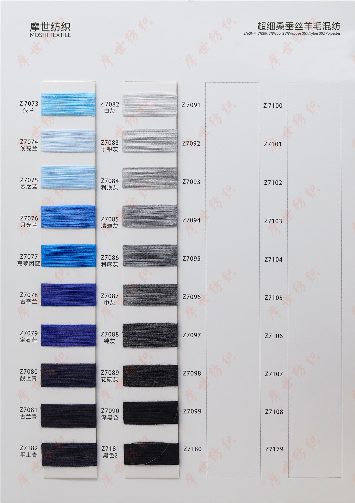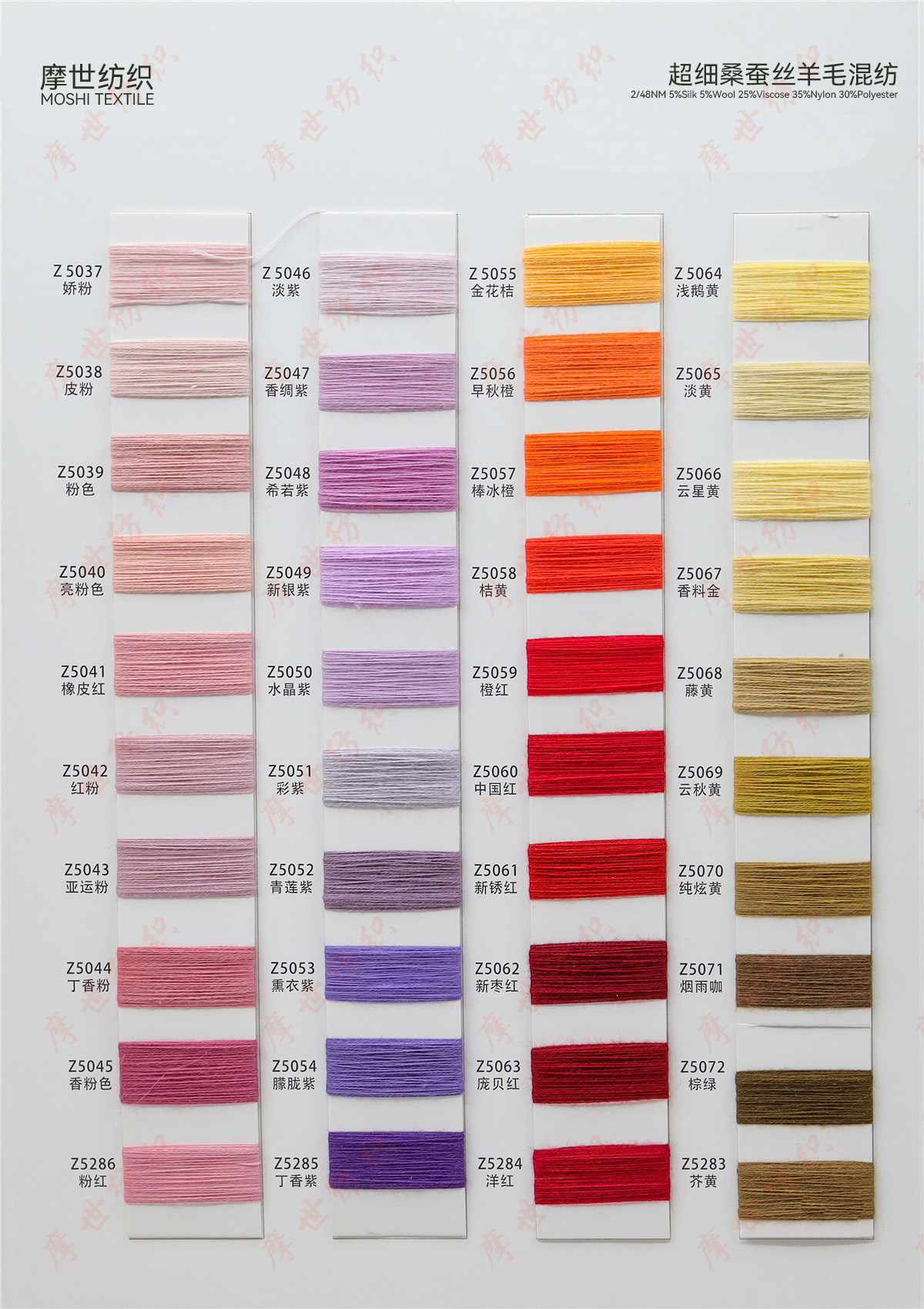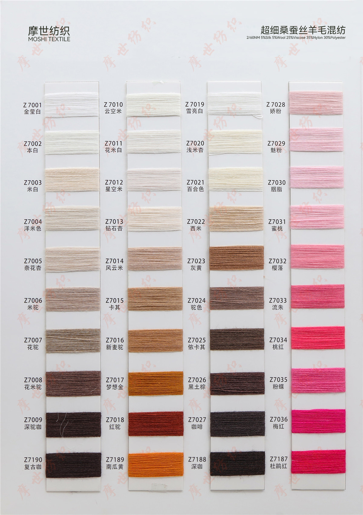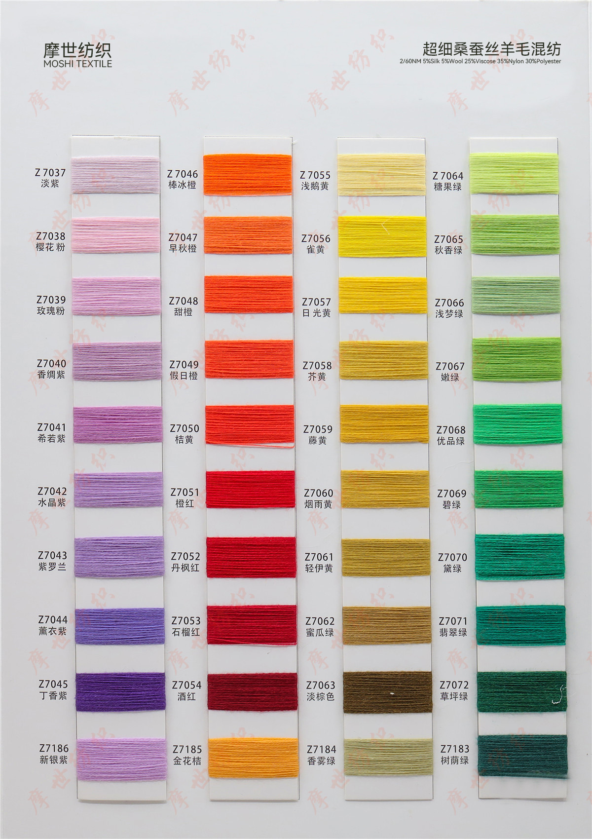 春夏系列,秋冬系列美麗諾羊毛,巴素蘭五五毛,巴素蘭三七毛,絲光羊毛,山羊絨混紡,羊毛混紡,羊仔毛系列,巴素蘭防縮水羊毛,,兔絨紗,馬海毛,半精紡混紡紗,高捻包芯紗,仿亞麻,高端亞麗爽,絲光棉,夏爽絲,棉混紡系列,高捻棉系列,高比例馬海毛,中比例馬海毛,高比例羊駝毛。再生環何類紗線