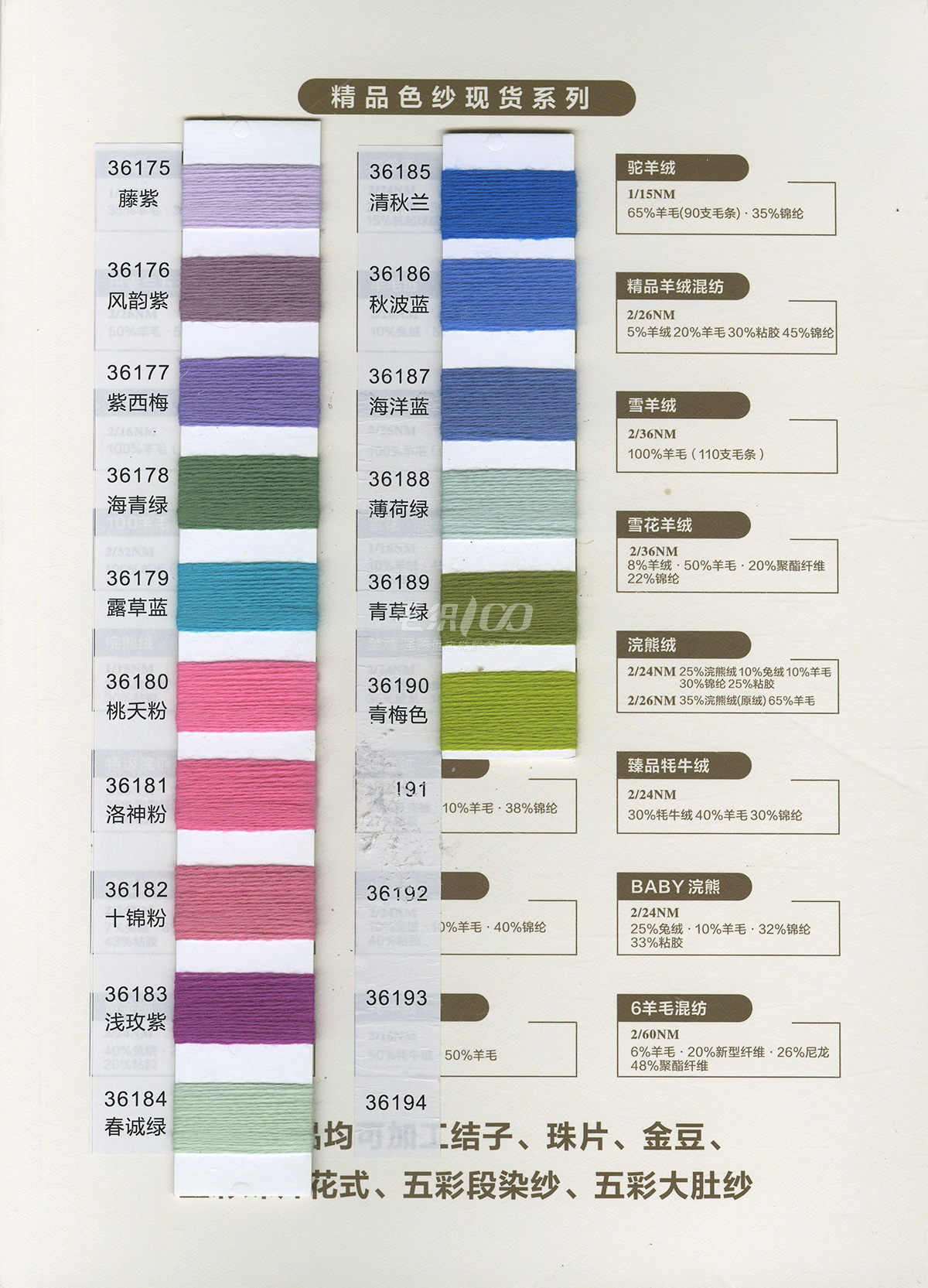 磨毛紗系列、圈圈紗、再生系列、漸變紗、段染紗、新型網紅紗、花式特種紗、羊毛羊絨、高端春夏紗等專業各種奇形怪狀紗線訂制,有求必應,沒有搞不定
