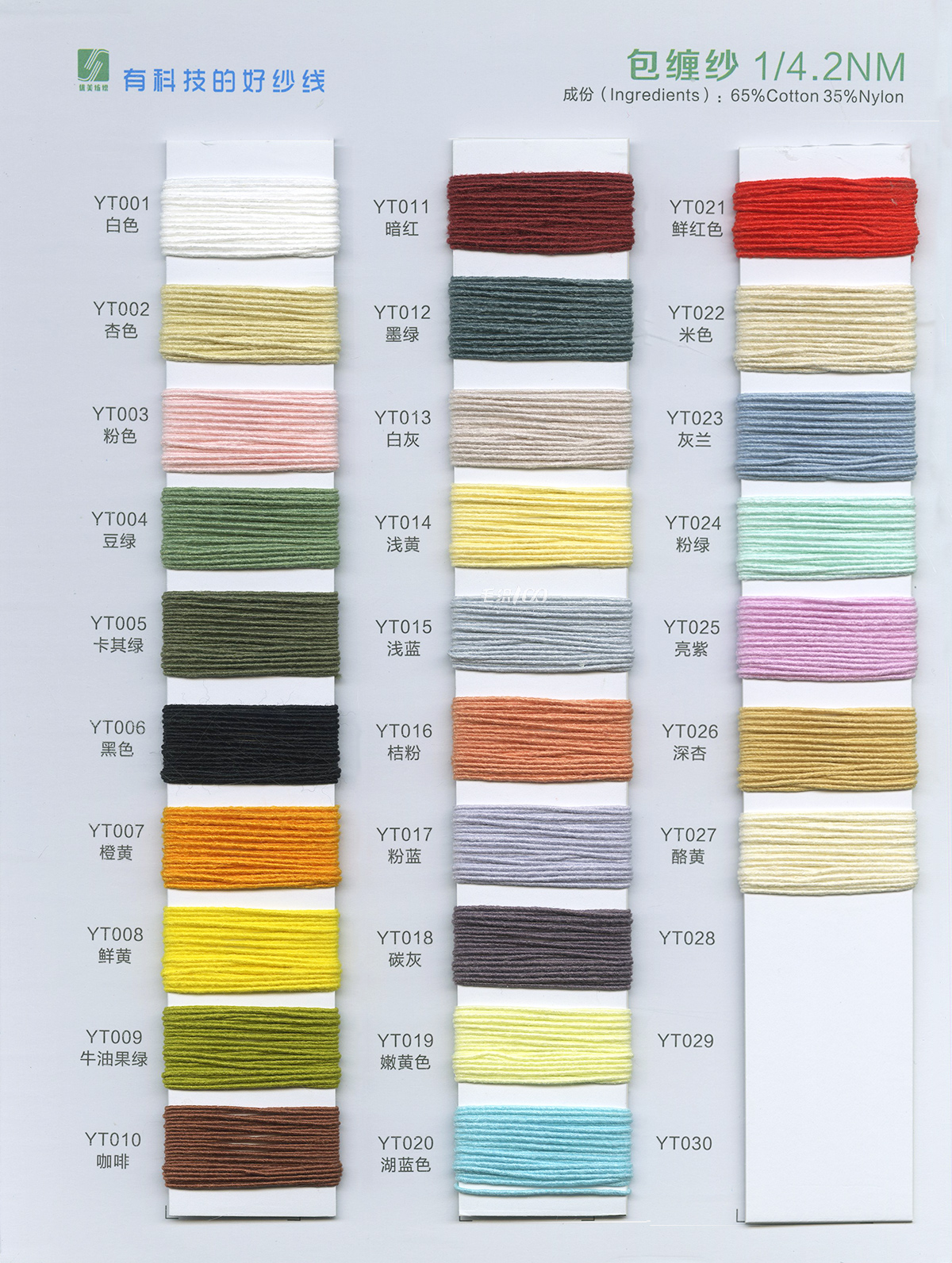 包纏紗系列(2.7NM、4.2NM4.5NM、5.2NM、5.8NM、7.5NM、15NM 19NM等不同材質的包纏紗),仿麻圈圈紗、賽雅絲(醋酸+莫代爾)、絲雅竹節、親膚絨、英拉絨、米拉絨、羊毛絨、駱駝絨、、羊駝毛、BB 考拉絨、閃光馬海毛等。