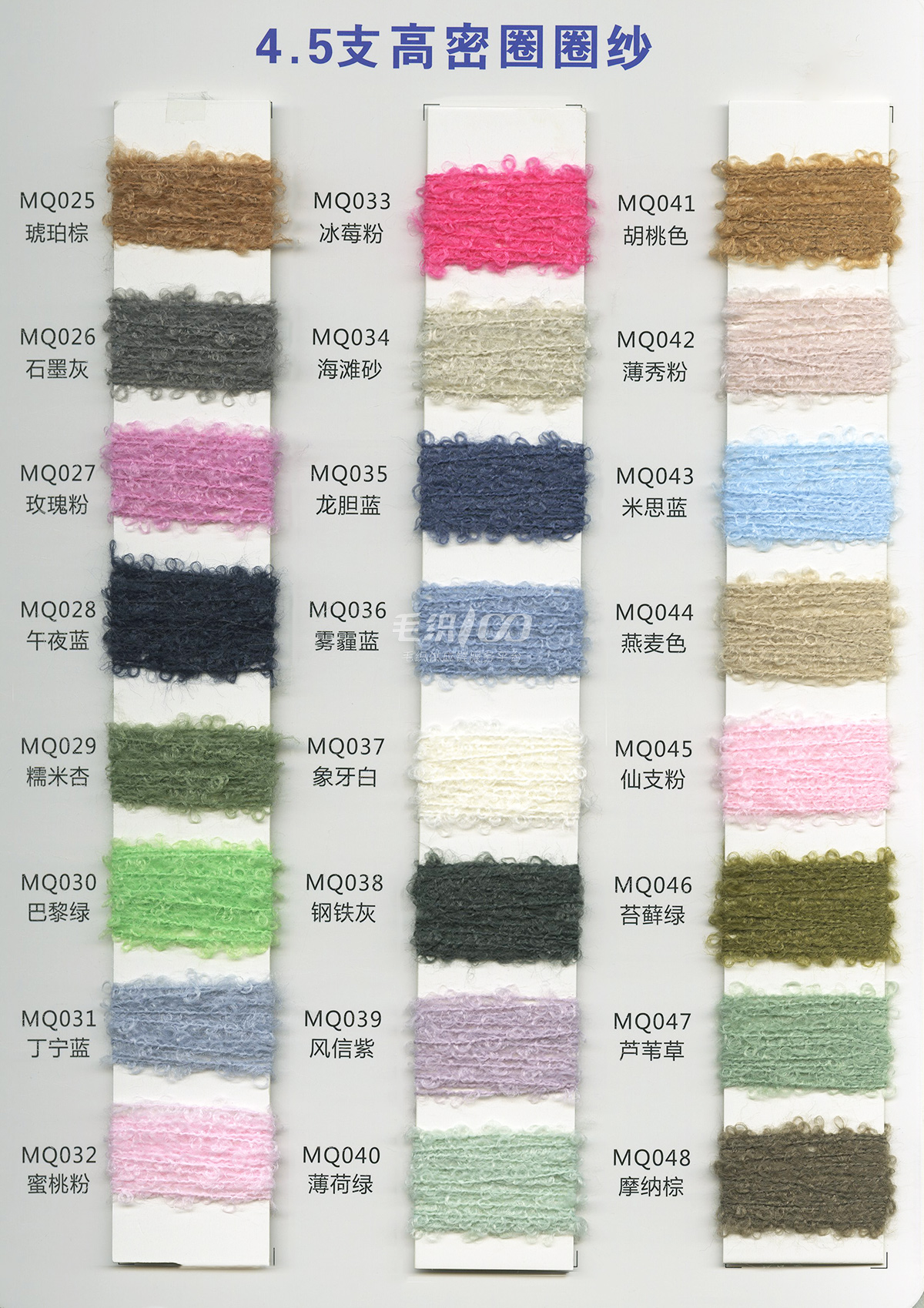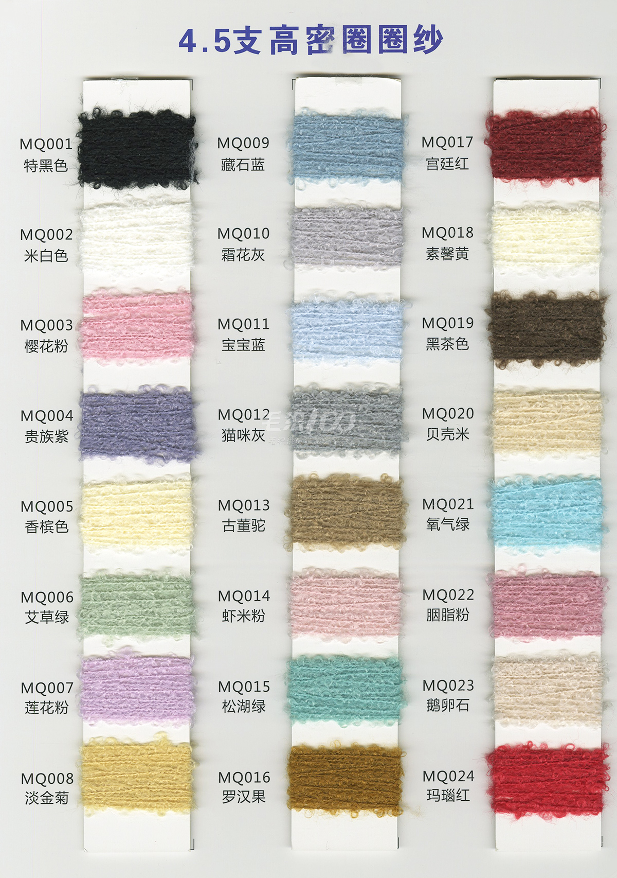 新型紗線:仿西班牙紗、17支高捻天麻絲、13支K絨、9.5支炫彩珊瑚絨、20支北極絨之星、幸運8字紗、捻紗之美、彩色之美、2.5支段彩噴噴毛、9支高比例公主兔、亮絲長毛、1/28支萬能配角紗…… 主推紗線:9支抗起球澳呢絨、14支漸變彩虹絨、10支珠片拉毛紗、0.9m不掉毛水晶紗、13支雪尼爾、14支雙色駝毛/雙色毛兔、14支仿牛絨、14支色紡駝毛絨、仿西班牙紗、新型捌字紗、2.6支段染網紗……