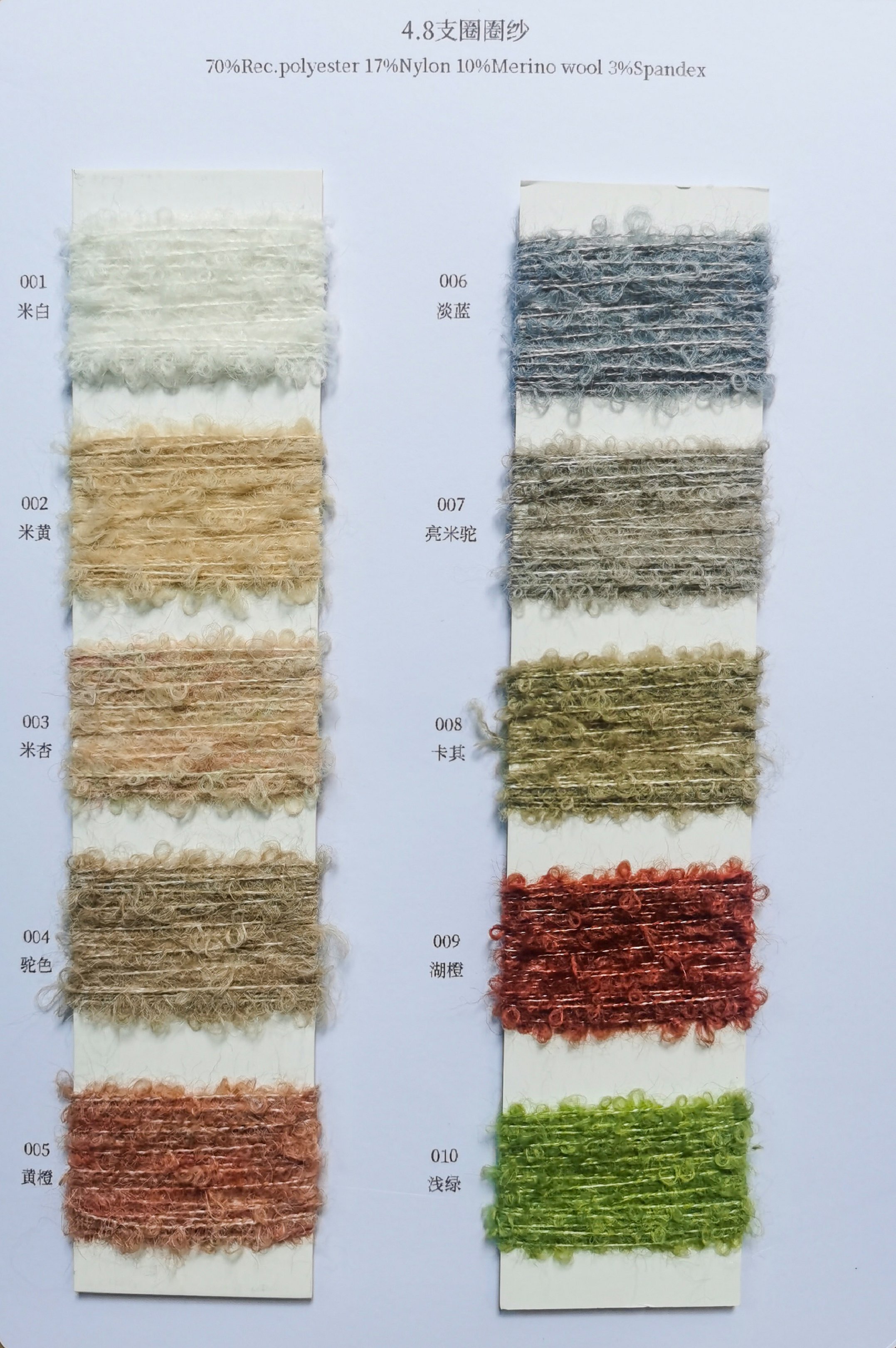 春夏系列,秋冬系列美麗諾羊毛,巴素蘭五五毛,巴素蘭三七毛,絲光羊毛,山羊絨混紡,羊毛混紡,羊仔毛系列,巴素蘭防縮水羊毛,,兔絨紗,馬海毛,半精紡混紡紗,高捻包芯紗,仿亞麻,高端亞麗爽,絲光棉,夏爽絲,棉混紡系列,高捻棉系列,高比例馬海毛,中比例馬海毛,高比例羊駝毛。再生環何類紗線