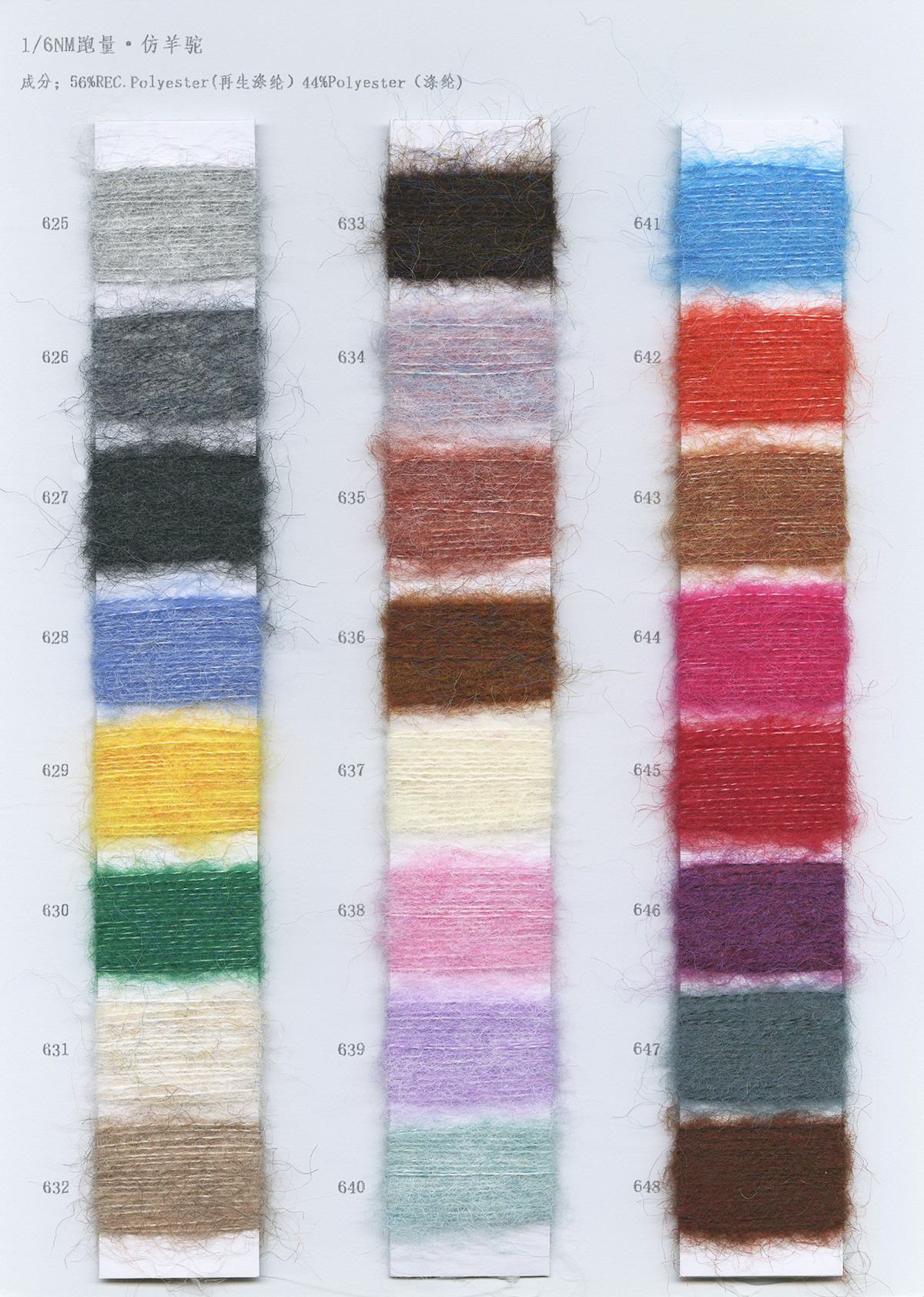 4.9/1NM超柔密圈圈(單色/雙色),4.3/1NM彩粒圈圈,2.4/1NM菊花絨,2.2/1NM法蘭絨,2.2/1NM星星點點,8.2/1NM彩點馬海,8.5/1NM好柔軟,4/1和6/1NM彩糯