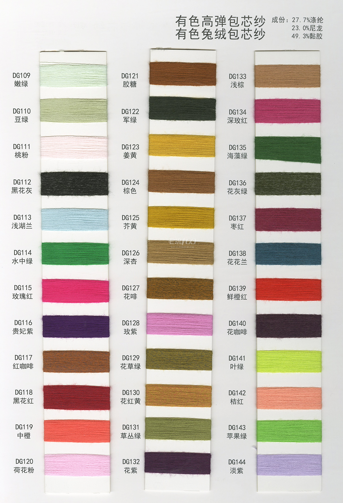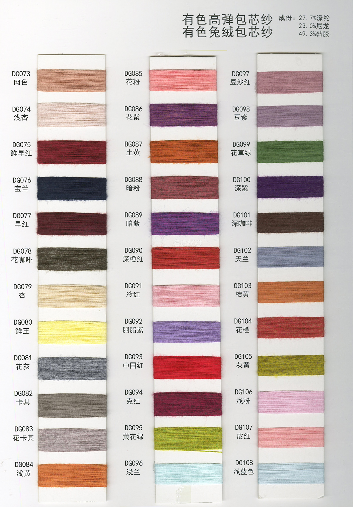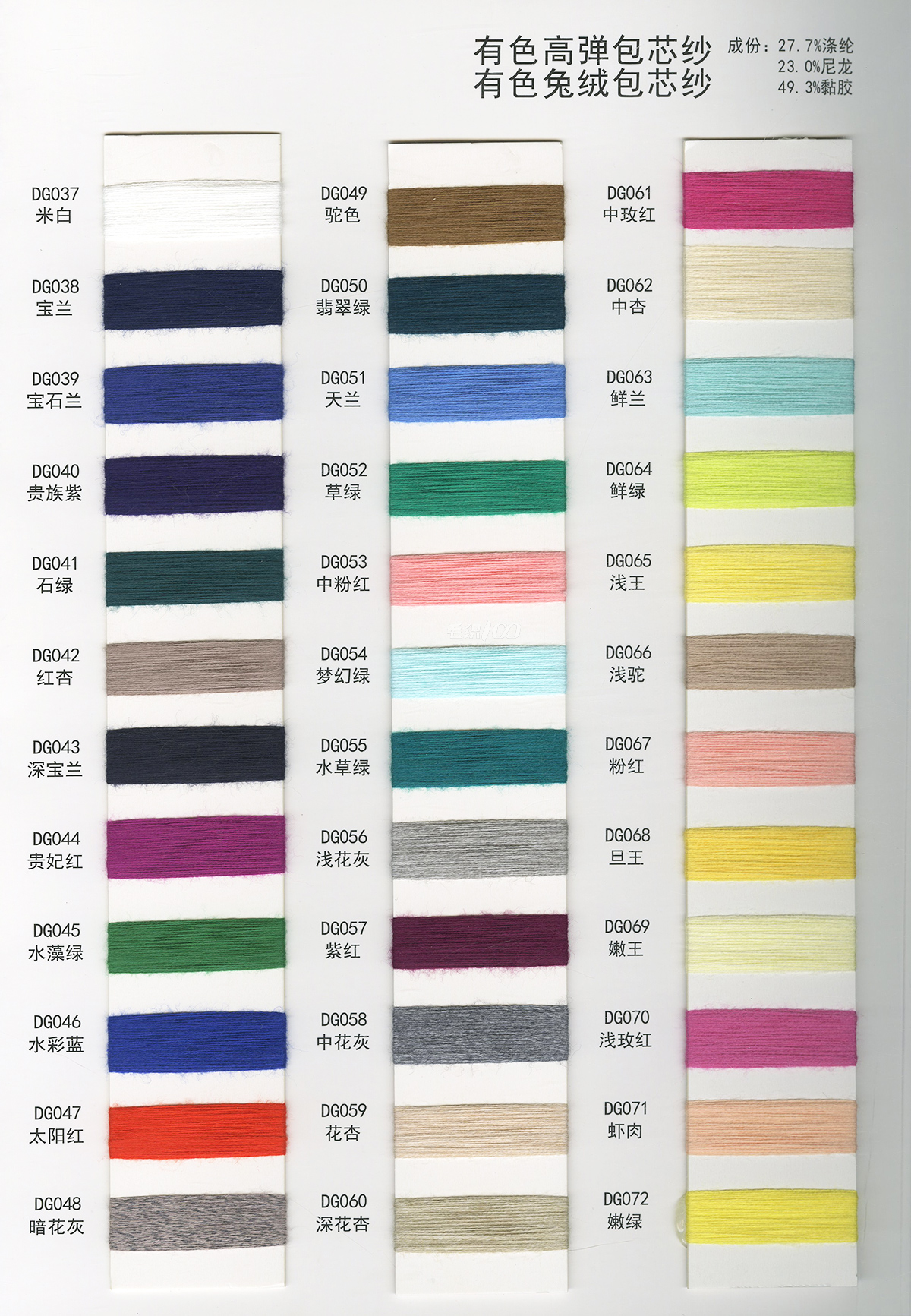 有色高彈包芯紗 有色兔絨包芯紗