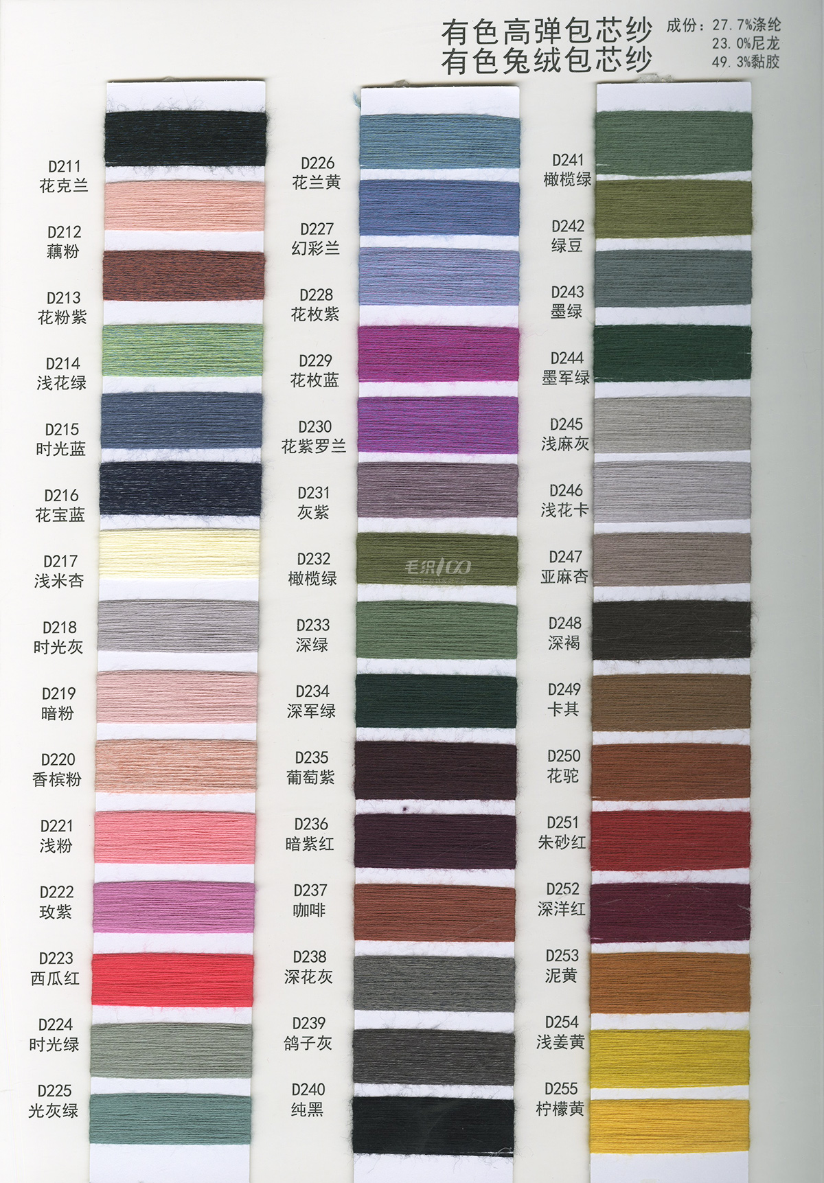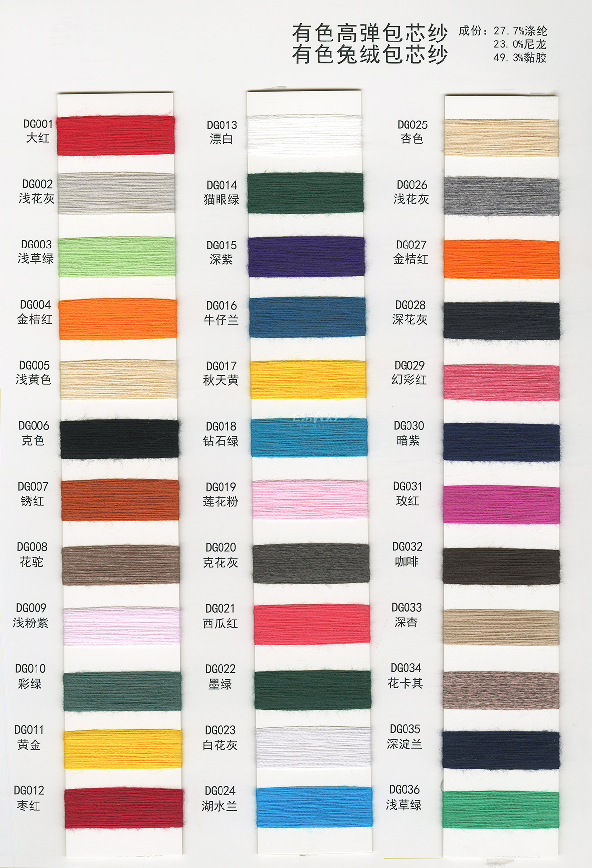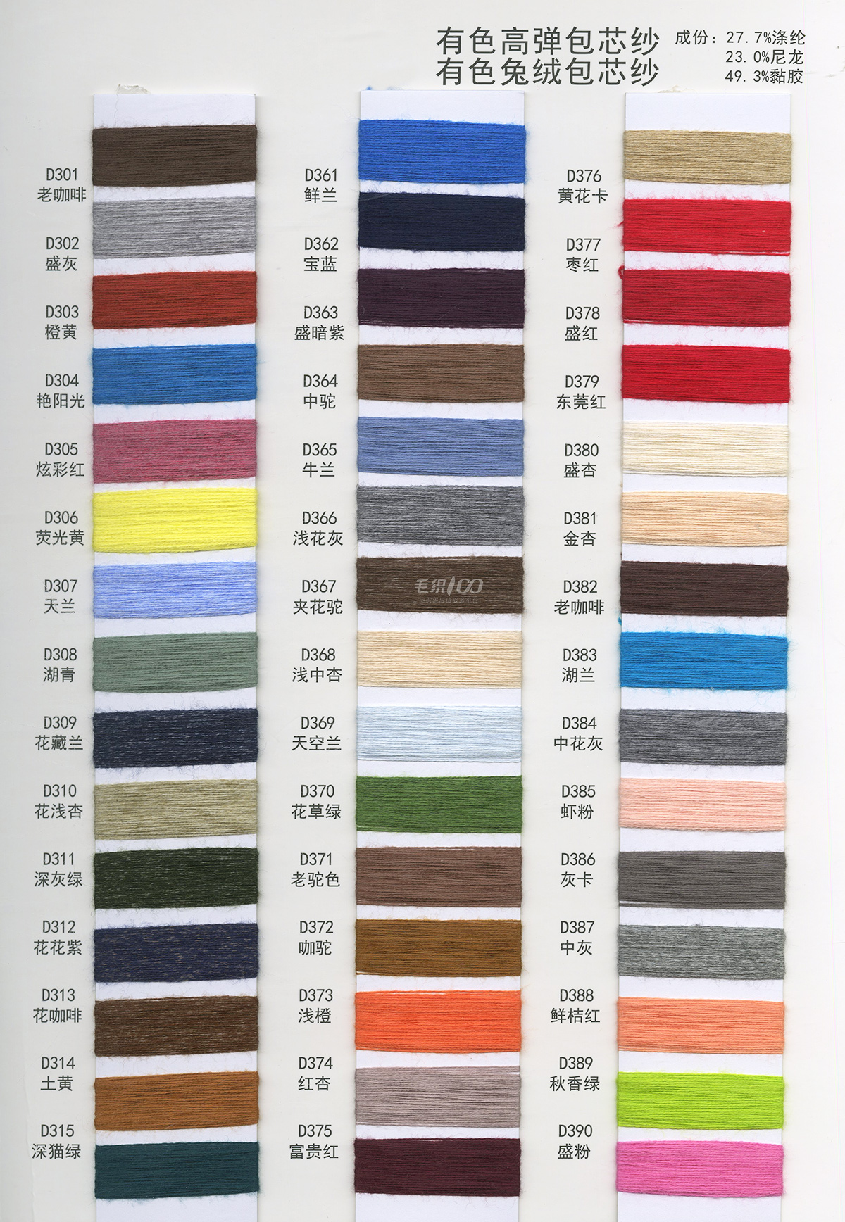 有色高彈包芯紗 有色兔絨包芯紗