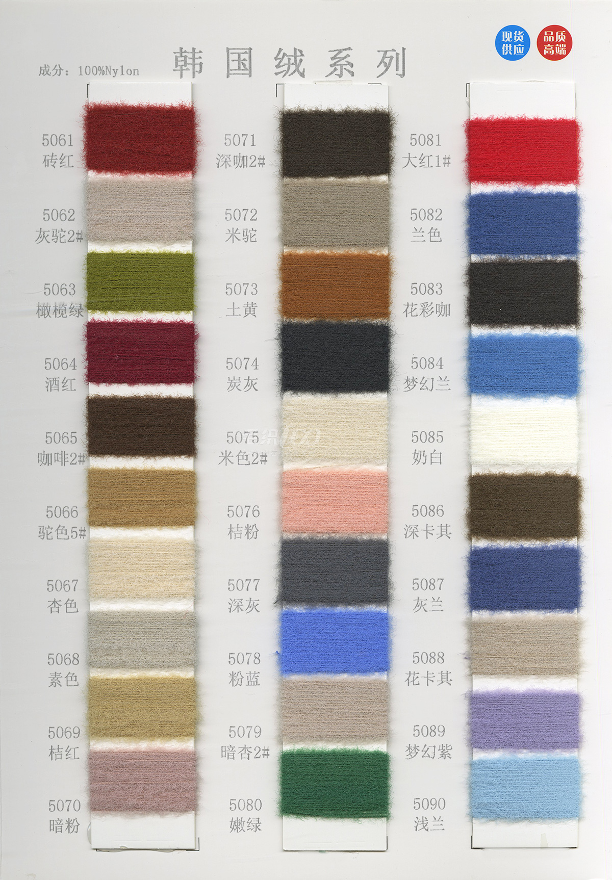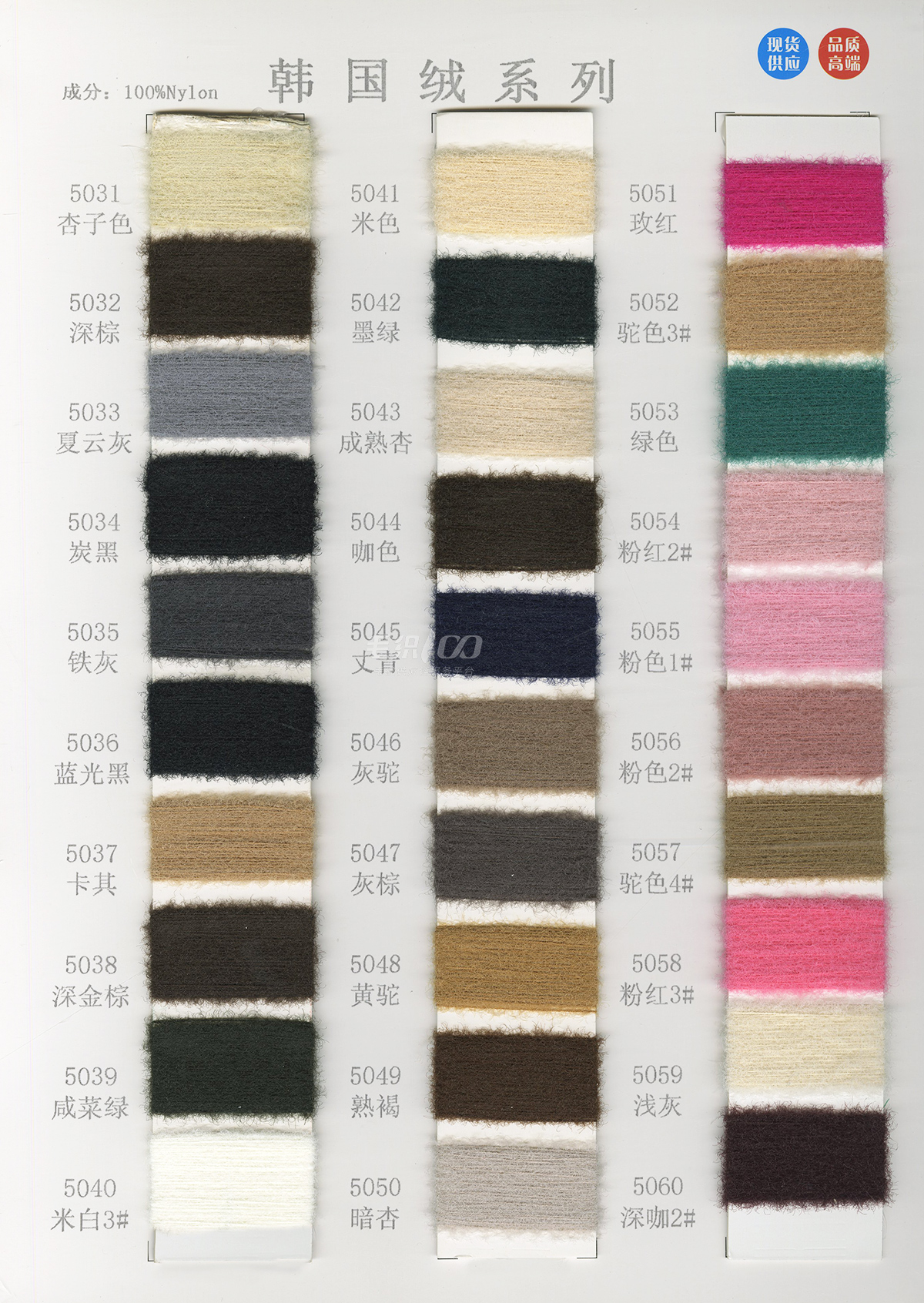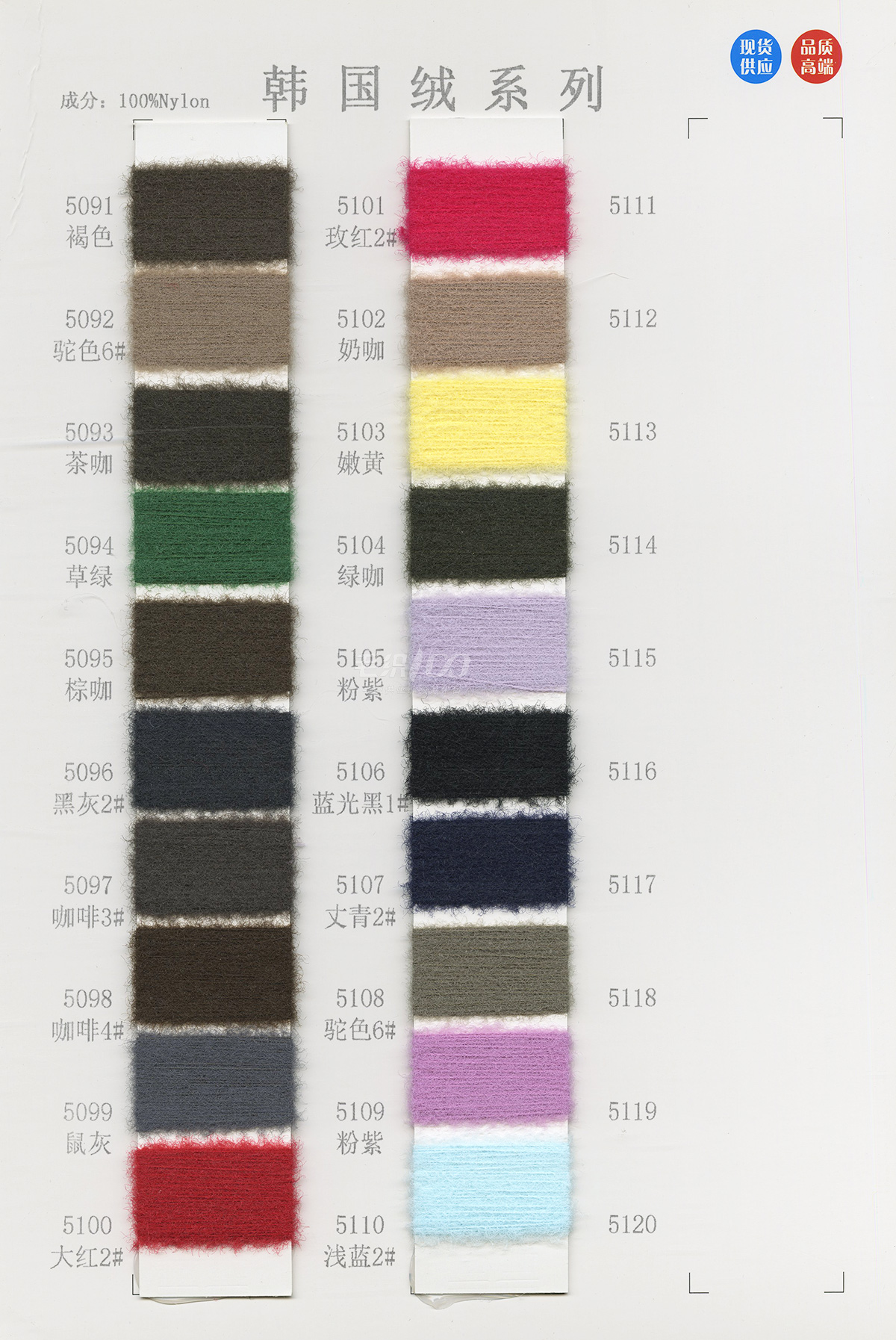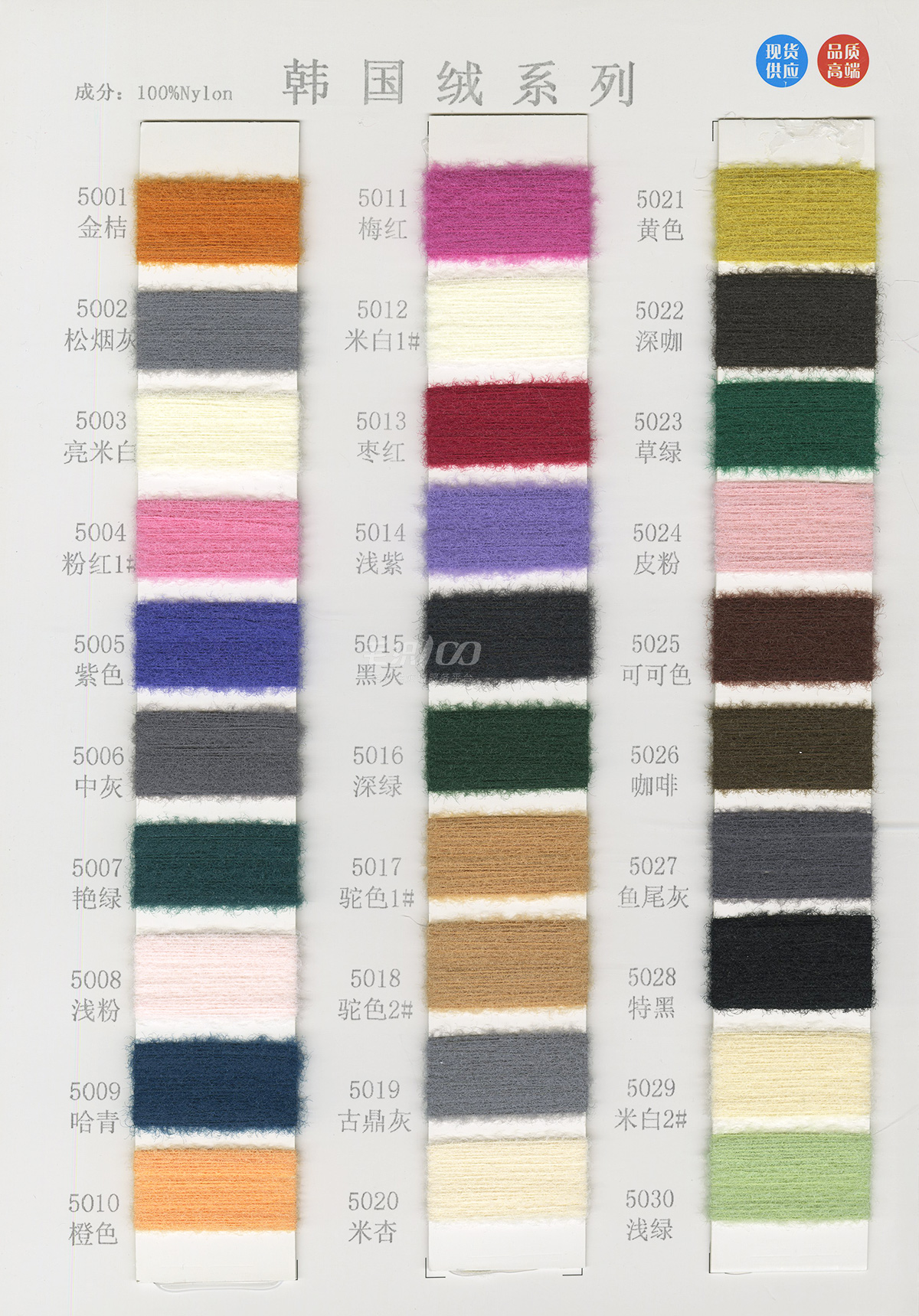 泰絲絨(2025新滌綸仿貂加柔)、仿貂、奧絨、雪尼爾、半邊絨、水晶紗、韓國絨、雙面絨、蜈蚣紗、羽毛紗、貓毛紗、小斜毛、小尼絨、包芯紗、纖絨紗、鳳凰絨、滌絨、鹿毛絨