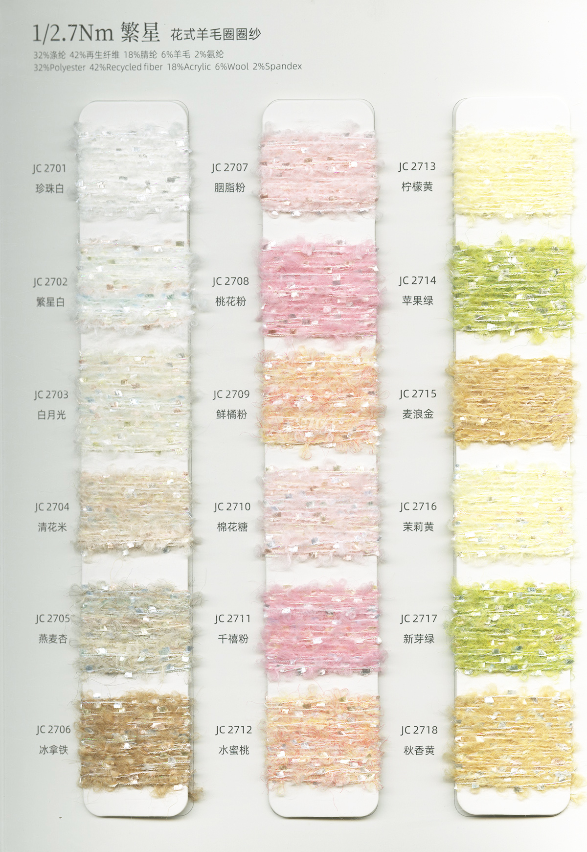 各類花式紗 特種紗 圈圈紗 漸變紗 段染紗 網(wǎng)紅紗 珠片紗 羊毛羊絨 羊毛混紡紗 羊駝 馬海 環(huán)保再生紗 抗菌除螨 功能紗線