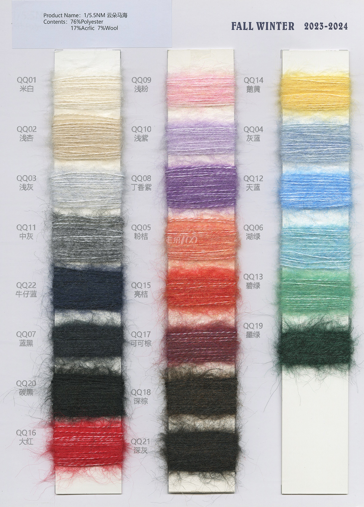 花式紗,羊毛馬海毛,彈力馬海毛,兔絨,噴毛紗,貓毛,包芯紗,羽毛紗,大肚紗,冰島紗,仿亞麻,空心棉,雙曲,冰曲,蝴蝶紗,玻璃紗,結(jié)子棉