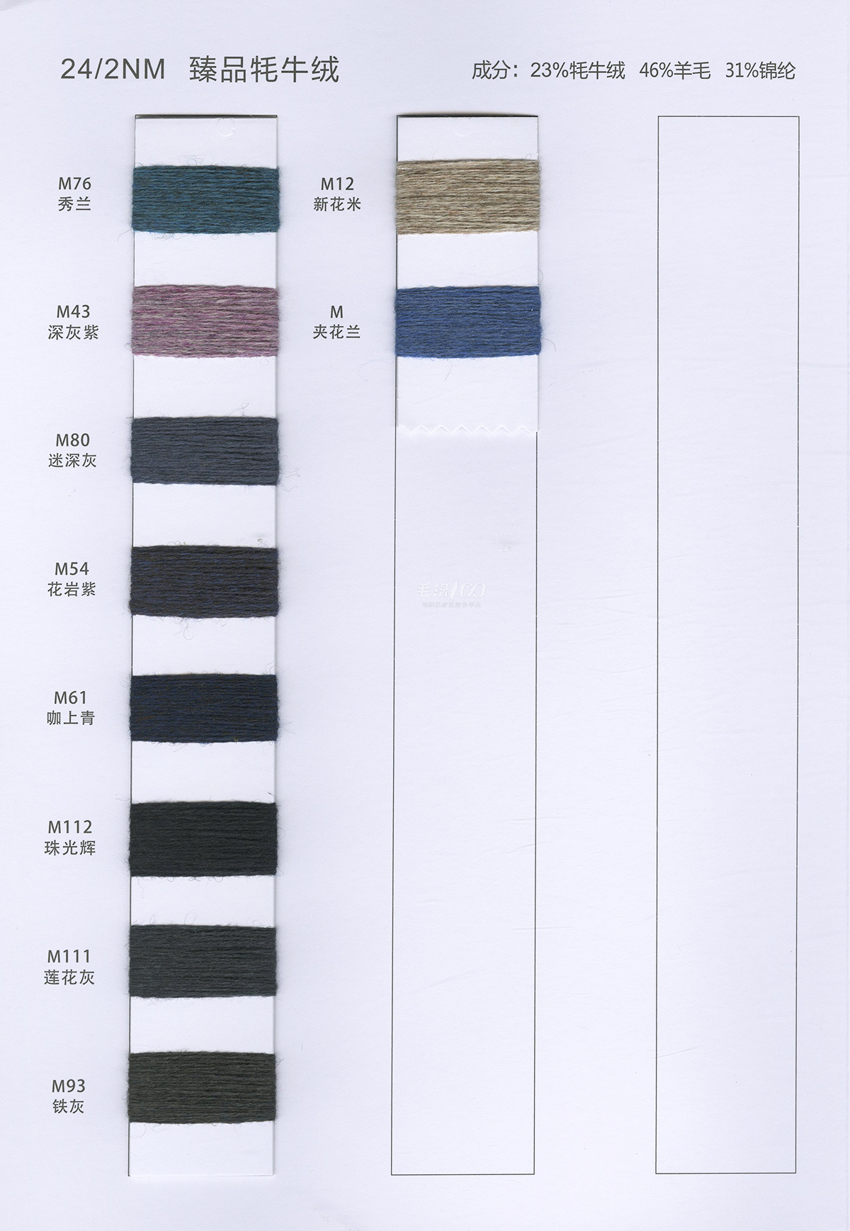 24/2澳毛絨 26/2優益絨 26/2羊毛絨 24/2臻品牦牛絨 24/2浣熊絨 15/2浣熊絨 26/2蜜熊絨 16/2華絨浣熊絨 26/2華絨浣熊絨 18/2全羊毛 26/2全羊毛