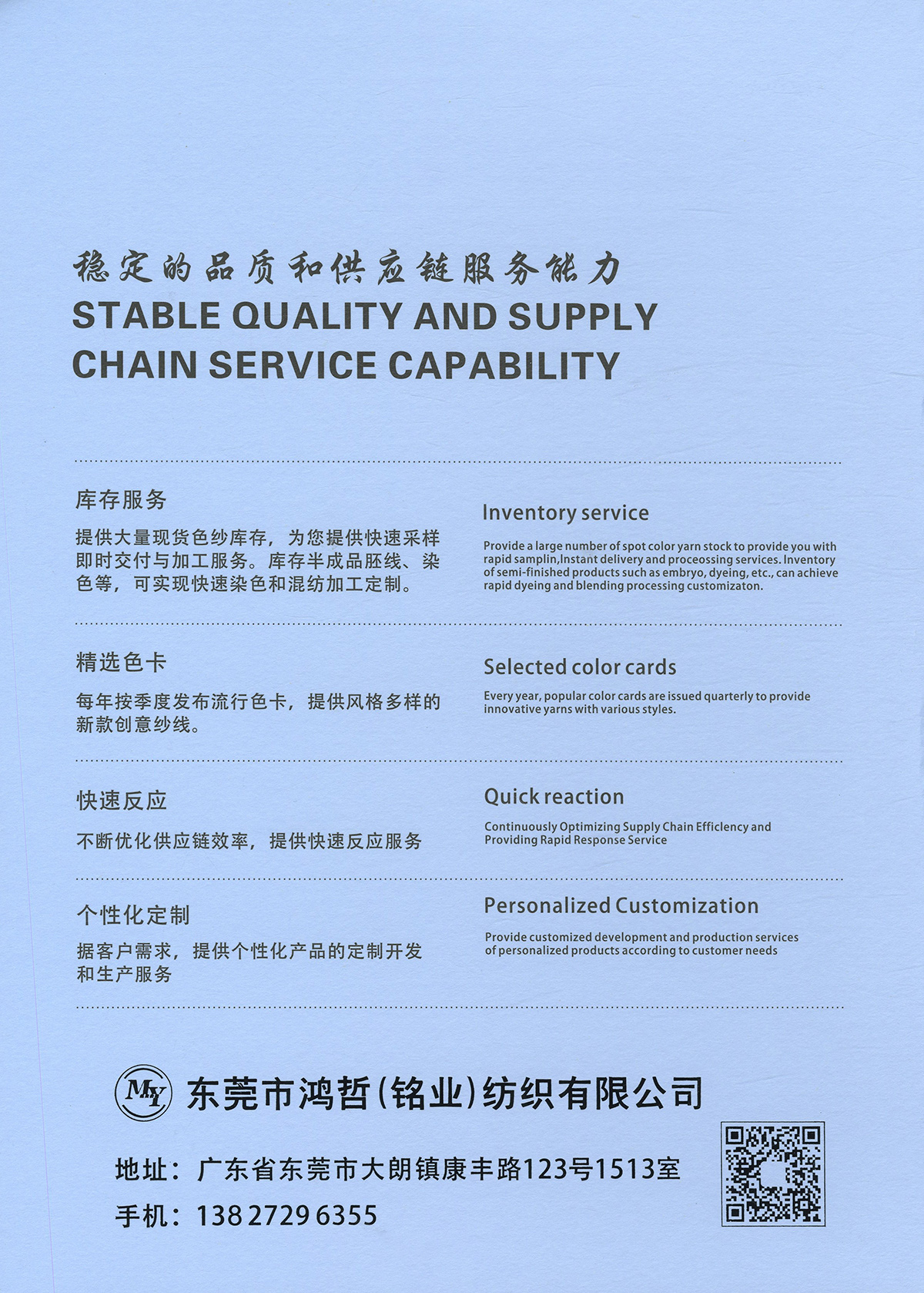 銘業紡織(大朗紡織創意產業中心店) 廣東省東莞市大朗鎮康豐路123號1513