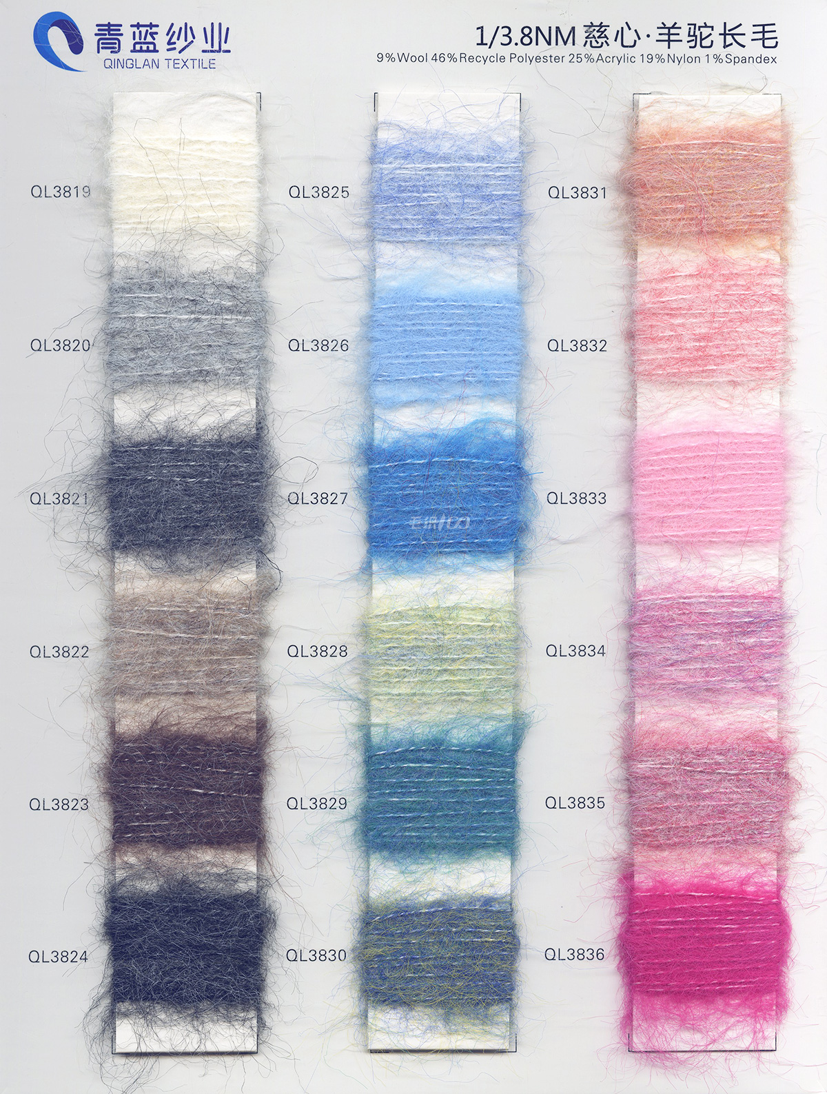 21支圈圈紗,幻彩圈圈紗,抗起球鹿毛絨、6羊毛北極絨、流金紗、流星紗、高捻仿亞麻、有色麻曲、有色棉曲、有色閃光絲、有色鉆石棉、羊毛混紡、特種花式紗等