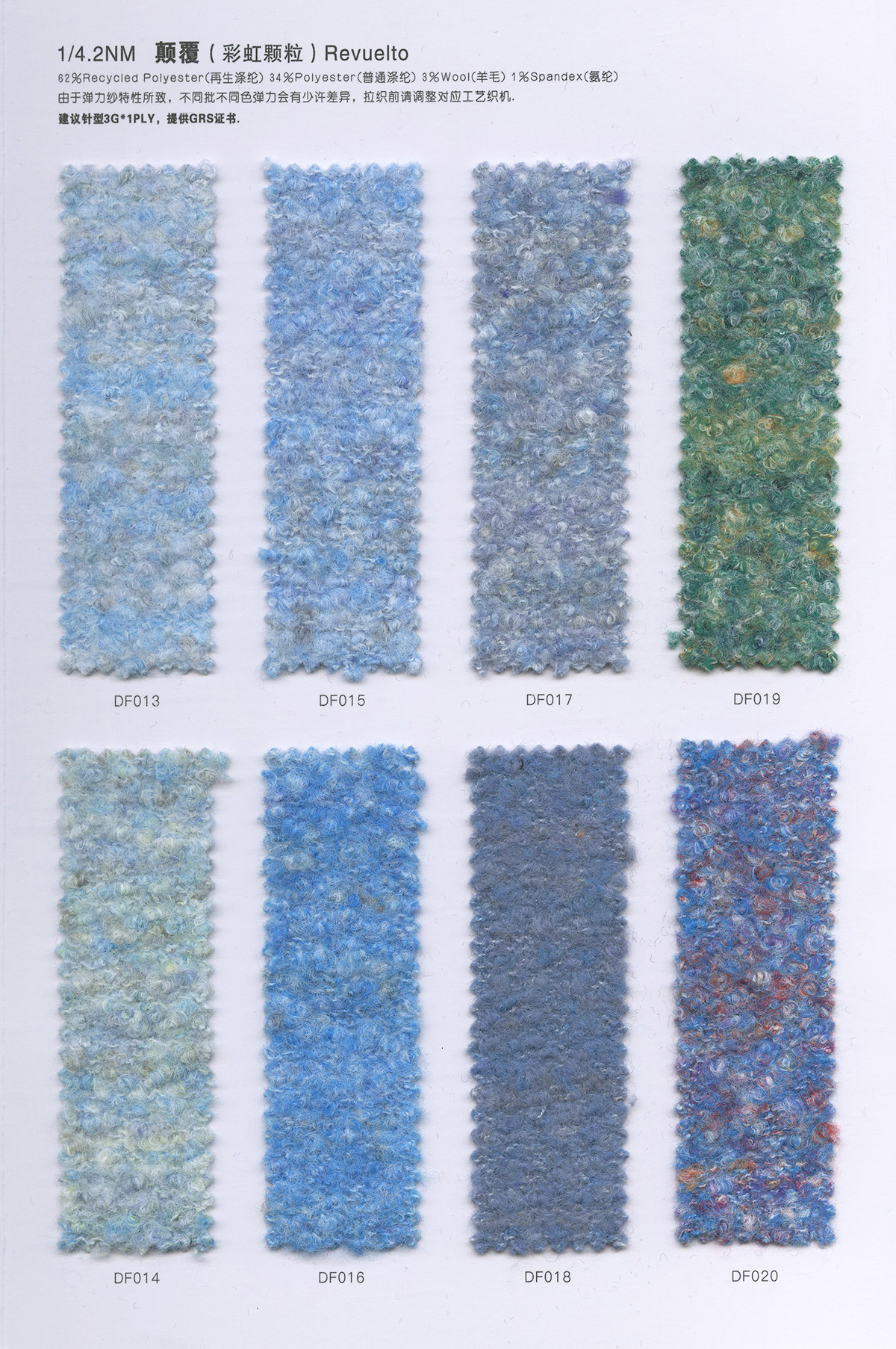 1/15NM冰曲(曲珠)、16S/2仿西班牙紗、28S/2精仿人造毛(腈綸)、18S/2抗起球北極絨、15支長毛馬海、28S/2抗起球安迪絨件染紗胚
