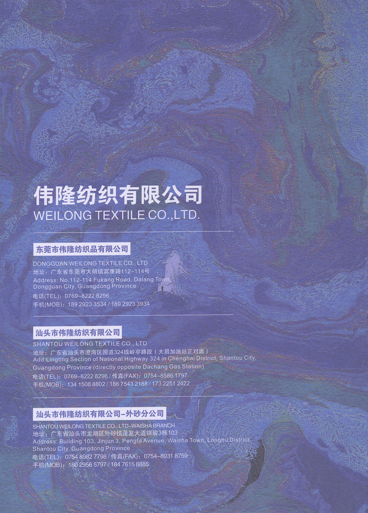 大朗鎮(zhèn)竹山村舊園路9號駿通產(chǎn)業(yè)園1棟右側(cè)8樓偉隆紡織