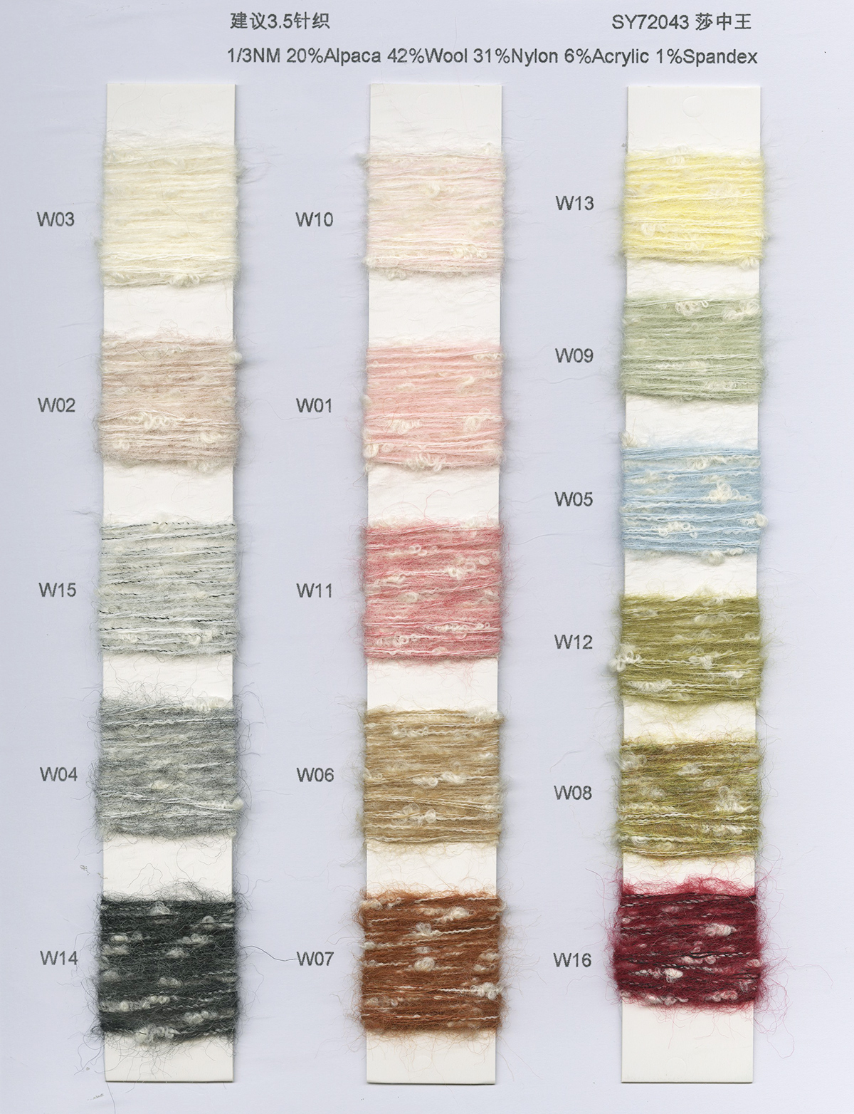 牦牛絨、貴族馬海、駱馬絨、親膚羊駝、BB羊駝、超細馬海毛、飄逸羊駝、金豹絨、再生彩虹紗等