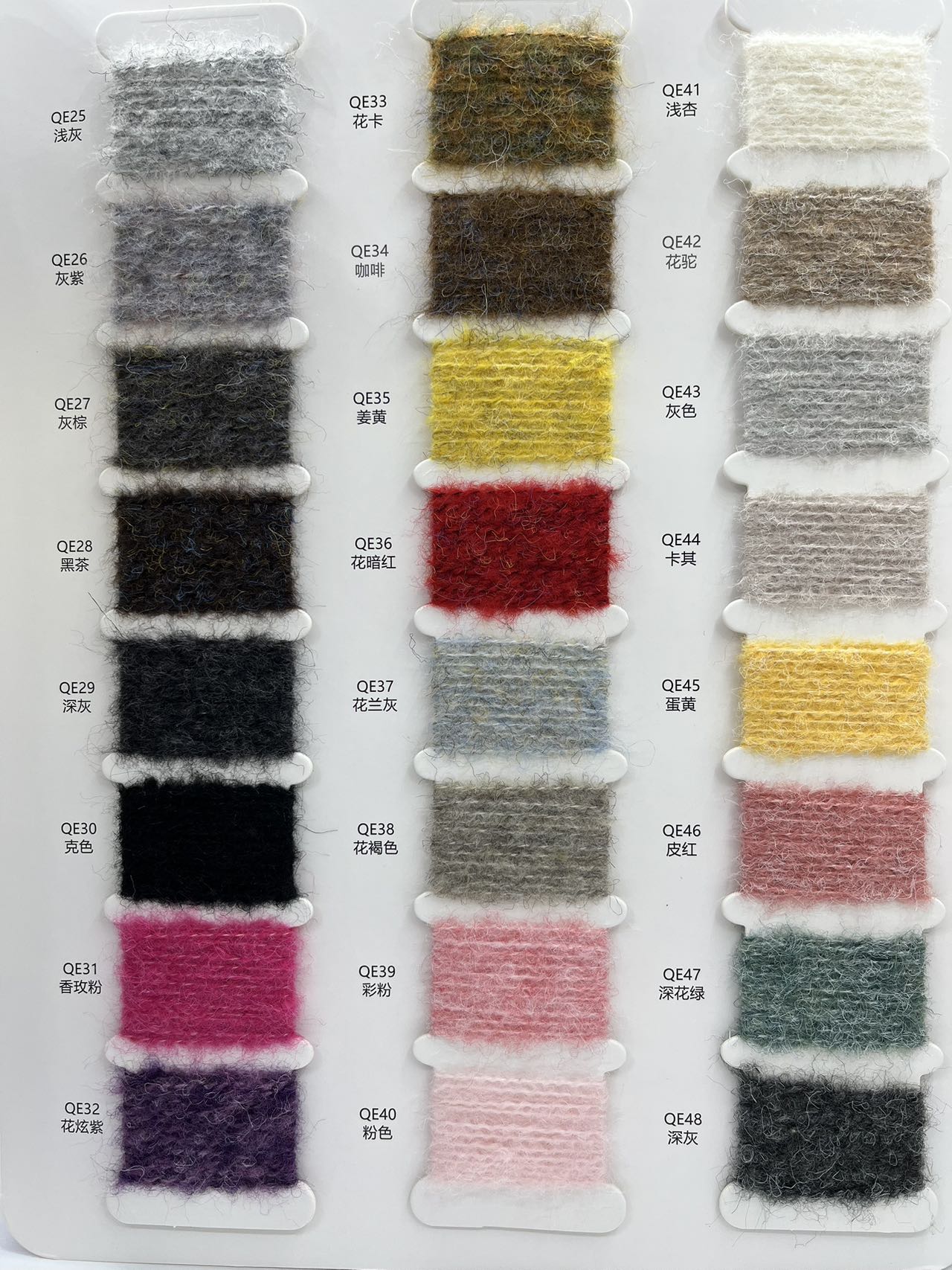 乒乓紗、菊花紗、絲絨紗、絲絨大肚、漸變花式紗、噴毛紗、小肚紗、圈圈紗、彩點紗、色紡冰島紗、仿羊絨、五五毛、貓毛紗、燈籠紗、蜈蚣紗、羽毛紗、仿貂毛、樓梯紗、牙刷紗、斜毛紗、高速帶、米粉紗、繡花線等特種紗。